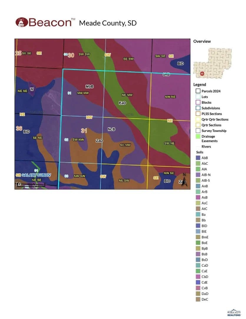 Listed By Tom Blain - Keller Williams Realty Black Hills 605-716-1111 Views, Privacy, Ranchette, Elbow Room! 1 0f 2 exceptional 40 +/- acre parcels conveniently located off of Elk Creek Rd in Meade County, SD. Corners have been pinned and marked, but selling by aliquot legal description only (not platted). Rolling terrain, grass pasture ground. Covenants in place. NO owner financing offered. Recorded wells in area range from 30-200 ft., but may vary depending on location. WREA overhead service across Rd. to west. Buyer responsible for any utilities they deem necessary, and for the cost of the same. Currently zoned as general Ag, and will most likely change upon sale of parcel. Buyer fully responsible to research property, access, zoning, potential/intended use, etc with Meade County prior to purchase. ***This is Gov't Lot 2 (South Parcel of 2 being offered). Located just 12 miles N of I-90 exit 58, 11 miles from I-90 Exit 46 (Elk Creek), and 14 miles from I-90 Exit 61 (Flying J). 18 miles to main gate of EAFB. 1 additional +/- 40 acre parcel (Govt Lot 1) is also offered to the N, and is also $280,000. Buyer(s)/Buyers Agent responsible for verifying any/all information about property. This is a Govt Lot on the West Township line, and will most likely be less than 40 acres total, due to Govt Lot correction line adjustments. We have discussed this with Meade County at liength, and they have stated that it should NOT be an issue getting a building permit under their current County ordinances. Meade County is aware that these parcels will sell by aliquot legal description only. Seller had corners marked in early 2025 by Scott Surveying. Call L/A with any questions concerning this.