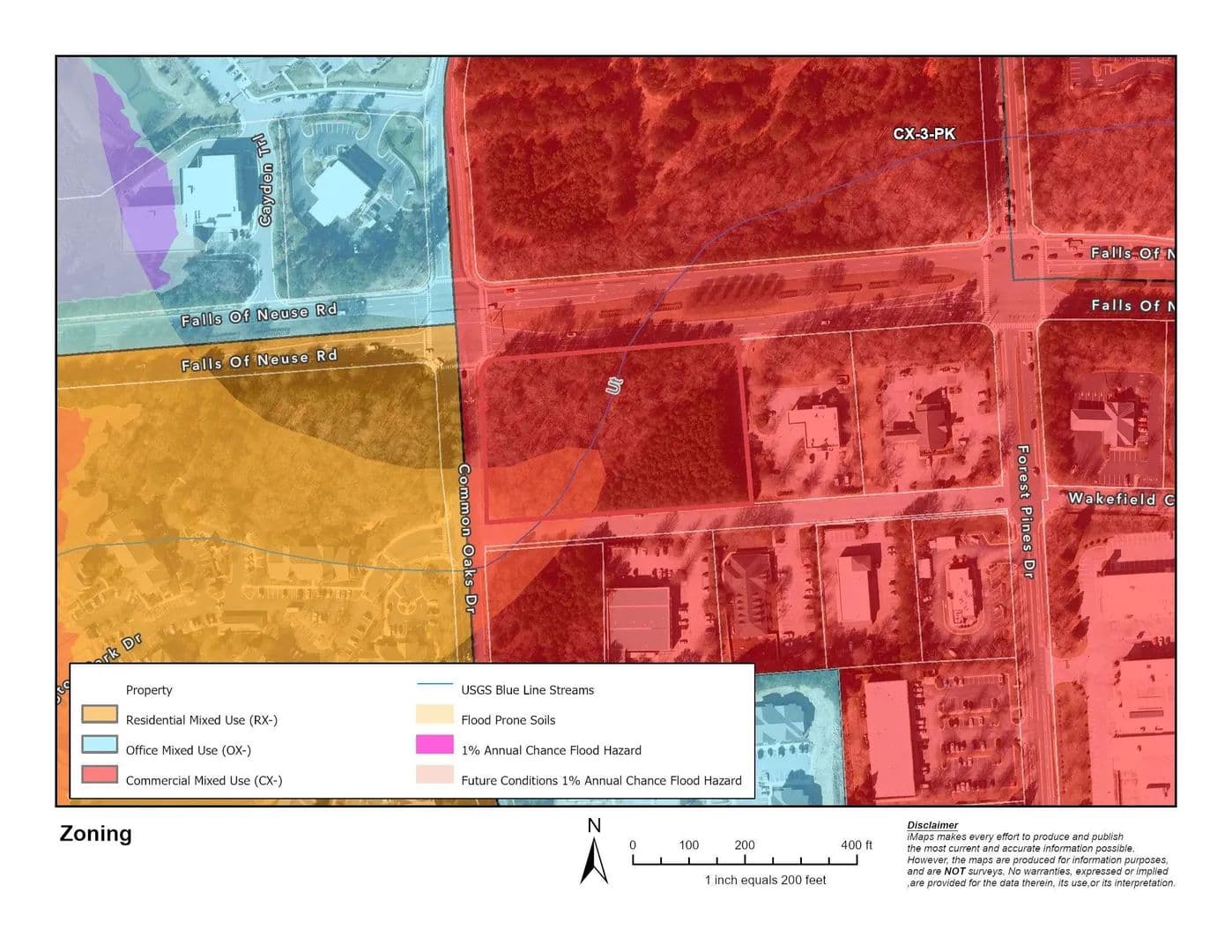 The property is located in Wakefield Commons Subdivision. It is 3.11 acres zoned in Raleigh for Commercial Mixed Use. Great location with available water and sewer.