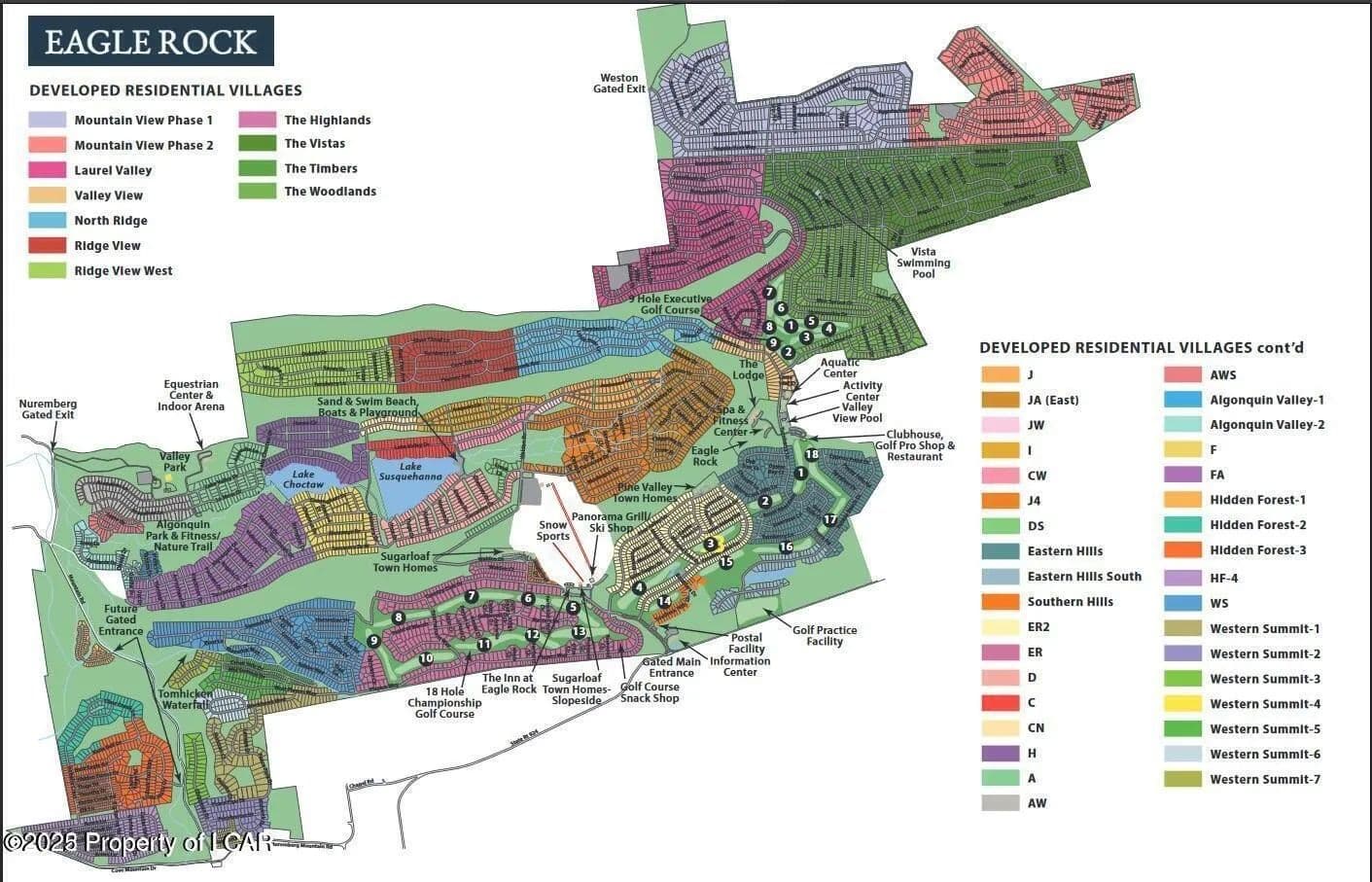 0.44 acre Eagle Rock Resort View lot with Owner Amenity package included. Golf, 3 outdoor pools, Aquatic Center, Activity center, Equestrian Center, Spa, Restaurant/Bar, Driving Range, Winter slopes, athletic fields, Bocce ball, Basketball, Volleyball, and so much more with monthly events