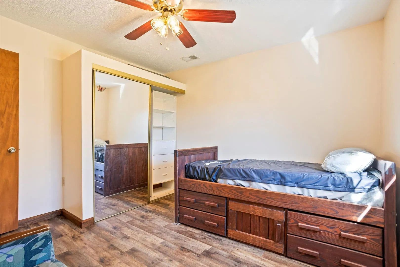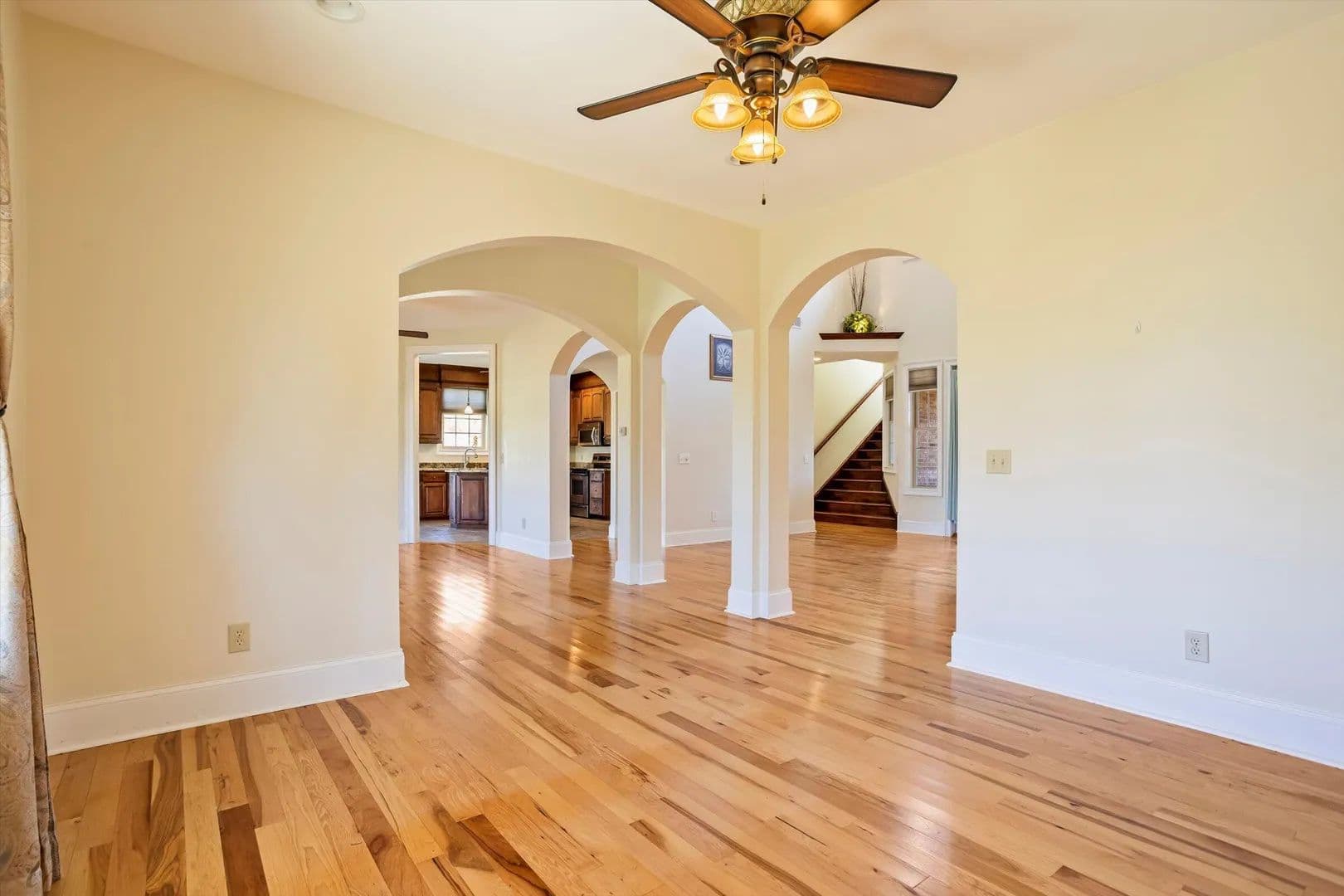 This well-designed home is impressive from its open living spaces, archways, and vaulted ceiling to its fireplace with masterful stonework. Double French doors to the covered porch and barbecue deck let you bring the outdoors in. The country kitchen features an island bar, Brazilian granite countertops, custom wood cabinetry, stainless steel appliances, double sink, undermount lighting, pantry and a sunny breakfast nook. The primary bdrm features a tray ceiling, dual walk-in closets with wood shelving and a private entry to the back porch for morning coffee. The primary bath showcases a walk-in tiled shower with independent temp dual showerheads, dual vanities, ample cabinet space and artful tile flooring. The second bdrm can double as a nursery or office with a beautiful wraparound bay window seat bench. Guest bath has custom wood vanity with granite top and tub/shower combo. The spacious upstairs flex room makes a great 3rd bedroom or media room. Walk-in attic, duct work access and closed cell insulation for energy efficiency! The mud room/laundry with electric washer and dryer hook-ups are just off the kitchen. Attached two-car side entry garage is plumbed for a half bath and has a parking pad in front. Home includes Levolor blinds, hickory wood floors in living and dining areas, rain gutters, termite contract and zoned central air conditioning.