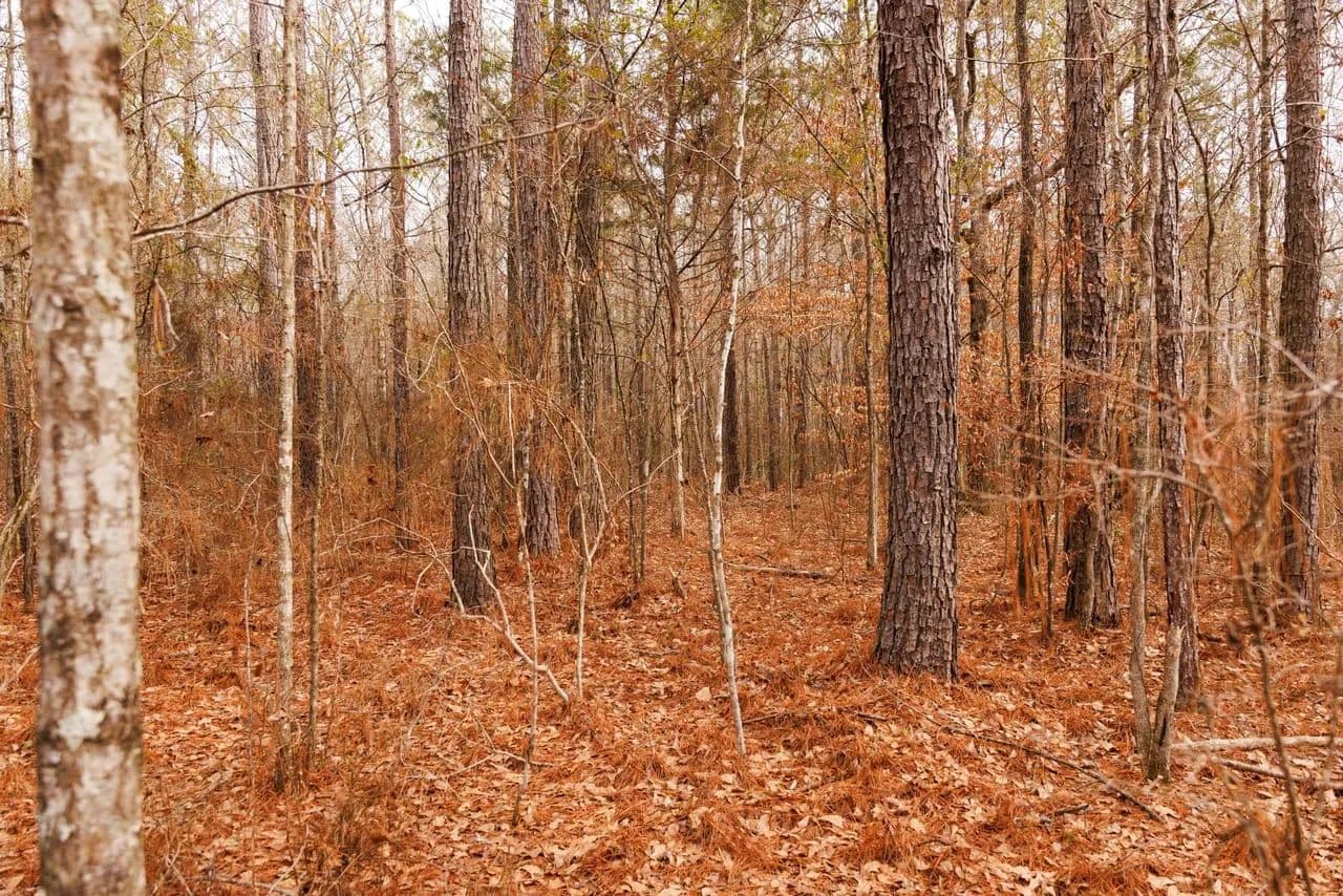 The property has road frontage on Jug Factory Road and Indian Pines Road, allowing easy access and the potential to purchase the land as a whole and divide it into smaller tracts. The timber is well balanced, with about 260 acres of mixed hardwood and pine, 60 acres of you5+- year old planted pine, and roughly 140 acres of naturally regenerated oak and pine. There are also about 30 acres of open fields and meadows, ideal for homesites or wildlife food plots.