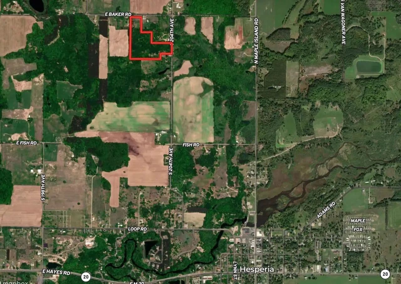 Just 1 mile northwest of Hesperia and within easy reach of Muskegon, Whitehall, and Grand Rapids, this 22.53± acre parcel offers a desirable mix of beauty, privacy, and recreational opportunity. Elevated rolling terrain provides scenic views, excellent wildlife habitat, and multiple potential build sites. Whether you’re looking for an outdoor getaway, hunting property, or future homesite, this property delivers outstanding value and natural appeal.