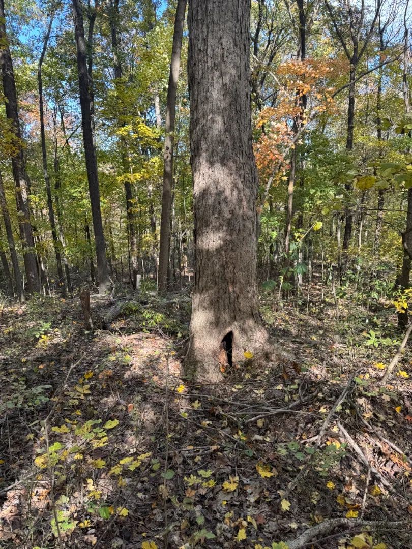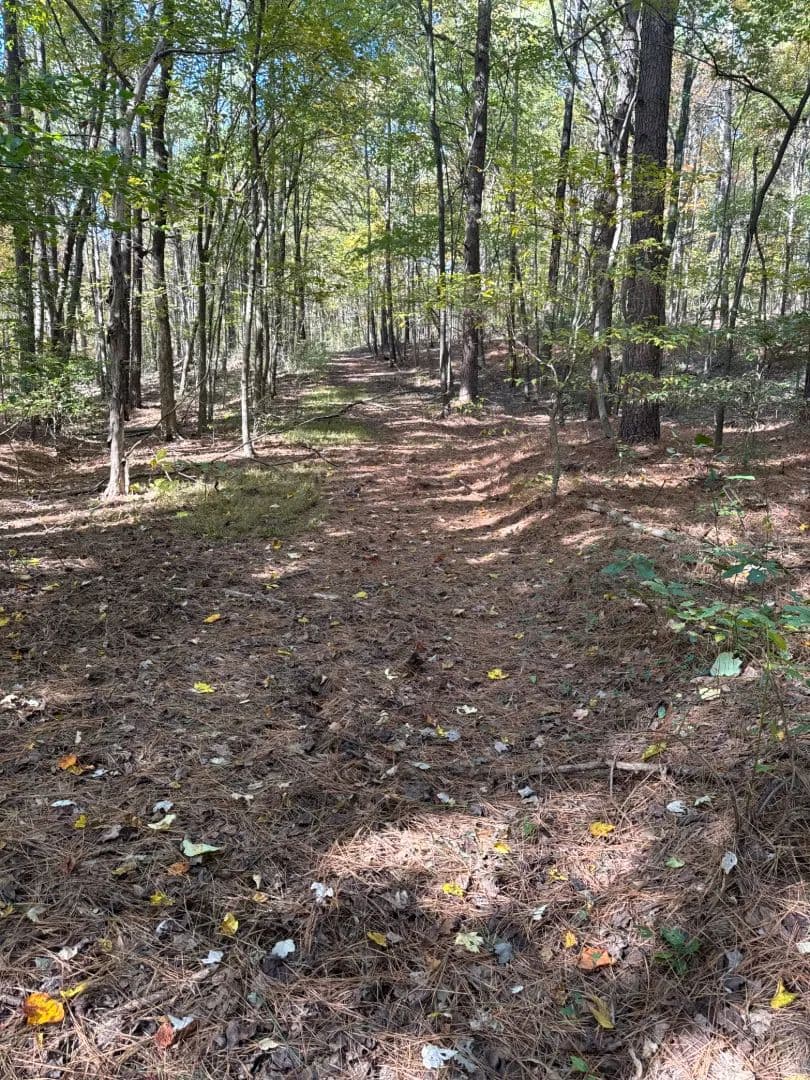 The land features rolling terrain, mature white oaks, a shared fishing pond plus a wildlife pond, established trails, an interior bedding area for local wildlife with an ideal spot for a food plot, and a long-range funnel pinch point.