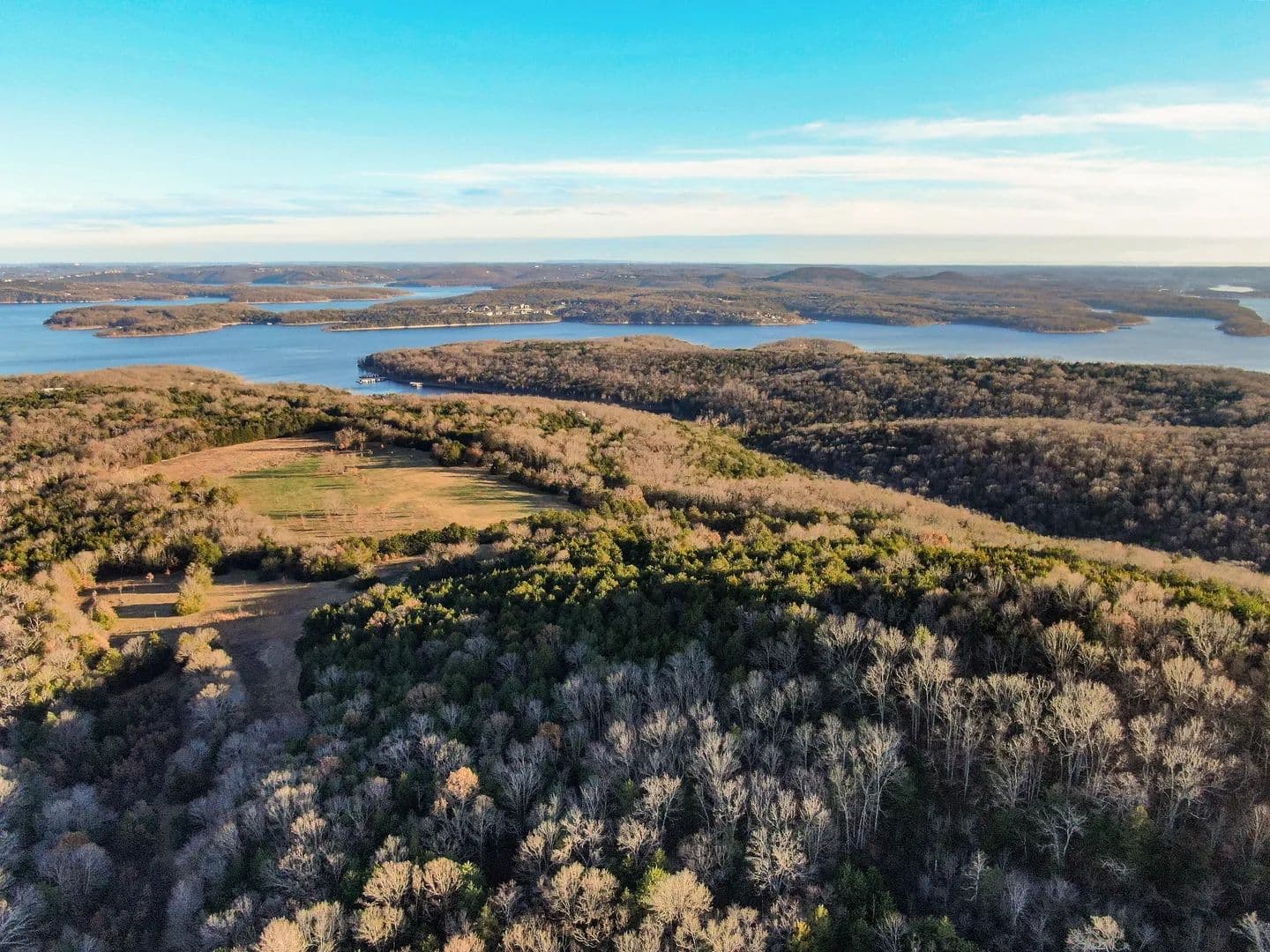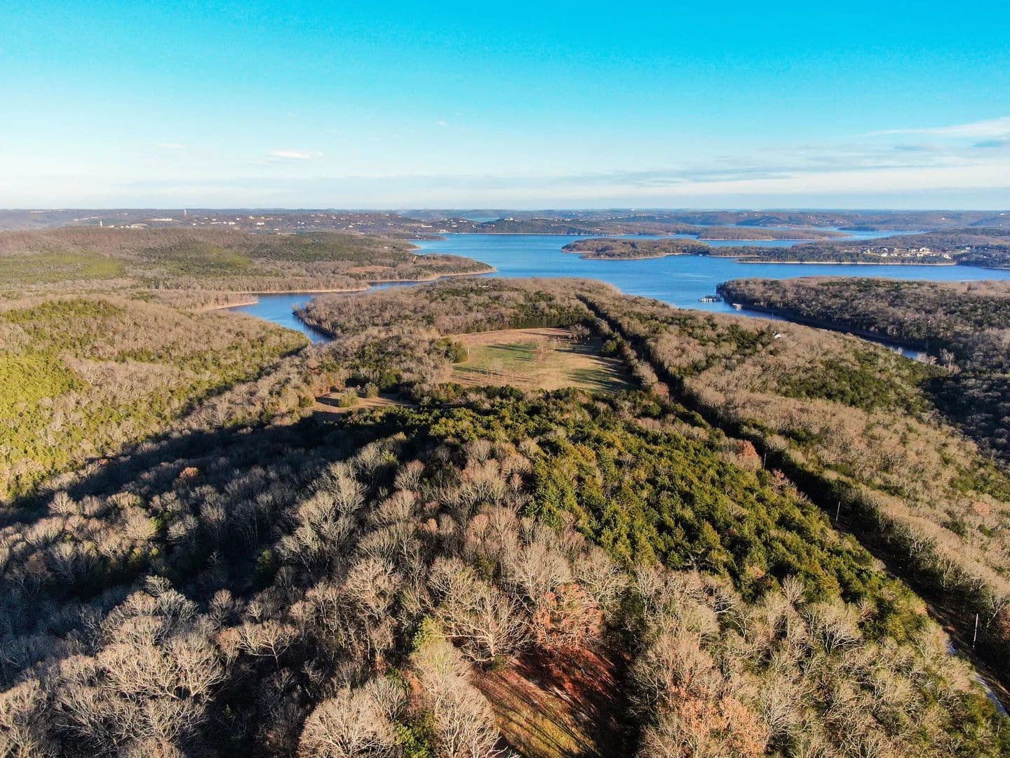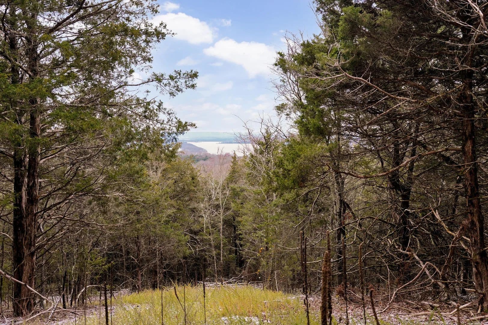 Striking views! This 30 wooded acres +/- of privacy with stunning lake view that adjoins Mark Twain National Forest. This unique property has building sites that been creatively cleared to accommodate custom homes while maintaining privacy and natural beauty of the Ozarks. Walking distance to lake. Home designs & build to suit plans could be available. Recorded survey and Covenants & restrictions on record. Electric close at chip & seal road which dead ends at Oak Tree Point.