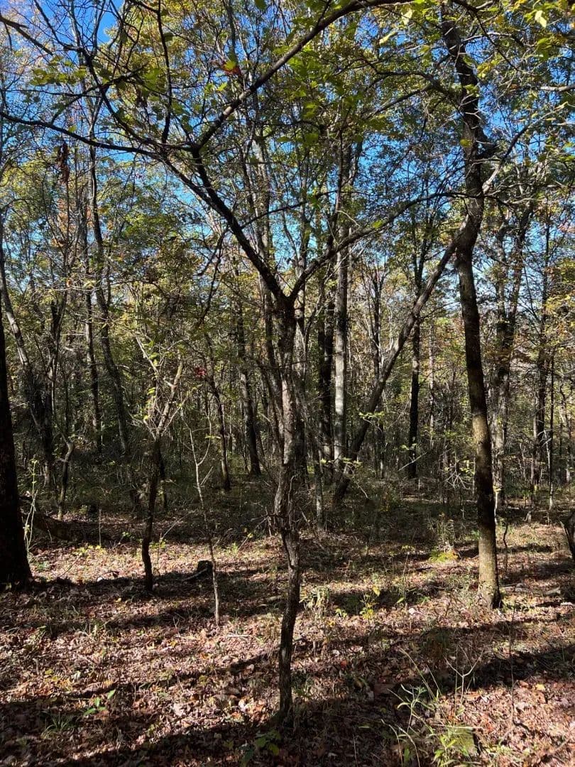 The land itself is a nature lover's paradise, densely forested with a stunning canopy of mature Red Oak and Black Oak trees that have been growing for decades. These majestic hardwoods provide not only natural beauty and shade but also significant timber value and wildlife habitat. The property features dramatic elevation changes that create captivating vistas, natural building sites with commanding views, and diverse terrain that adds character and endless possibilities for creative land use and development.