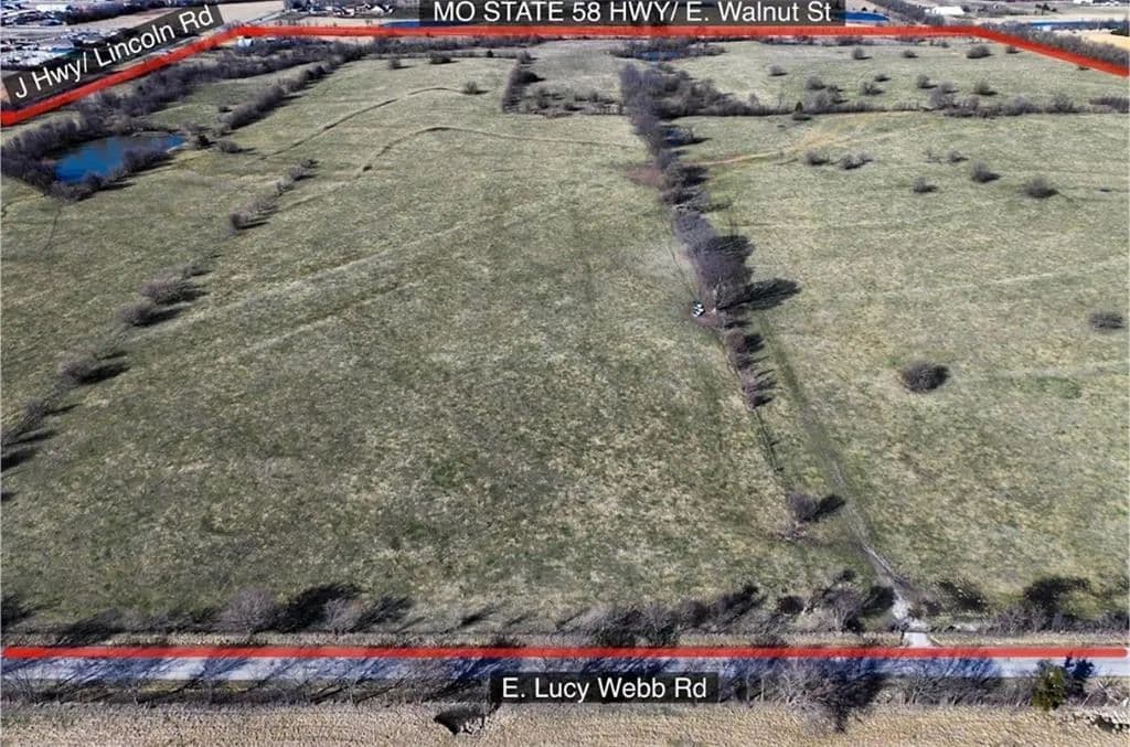 This expansive 160+/- acre property in Raymore, MO offers incredible potential for investors and developers. With approximately 2,600 feet of frontage along MO State Hwy 58, the land provides excellent visibility. It is also bordered by County Road J and Lucy Webb, offering multiple access points for future development.