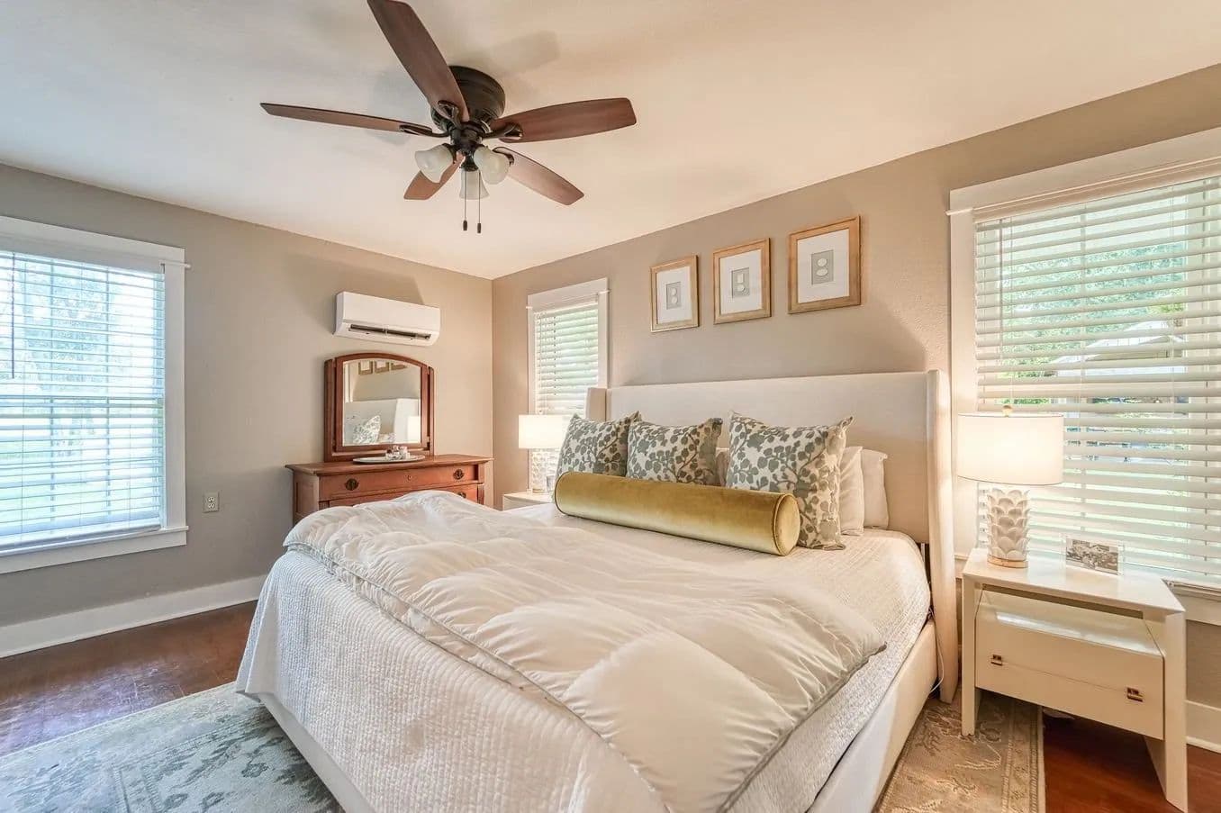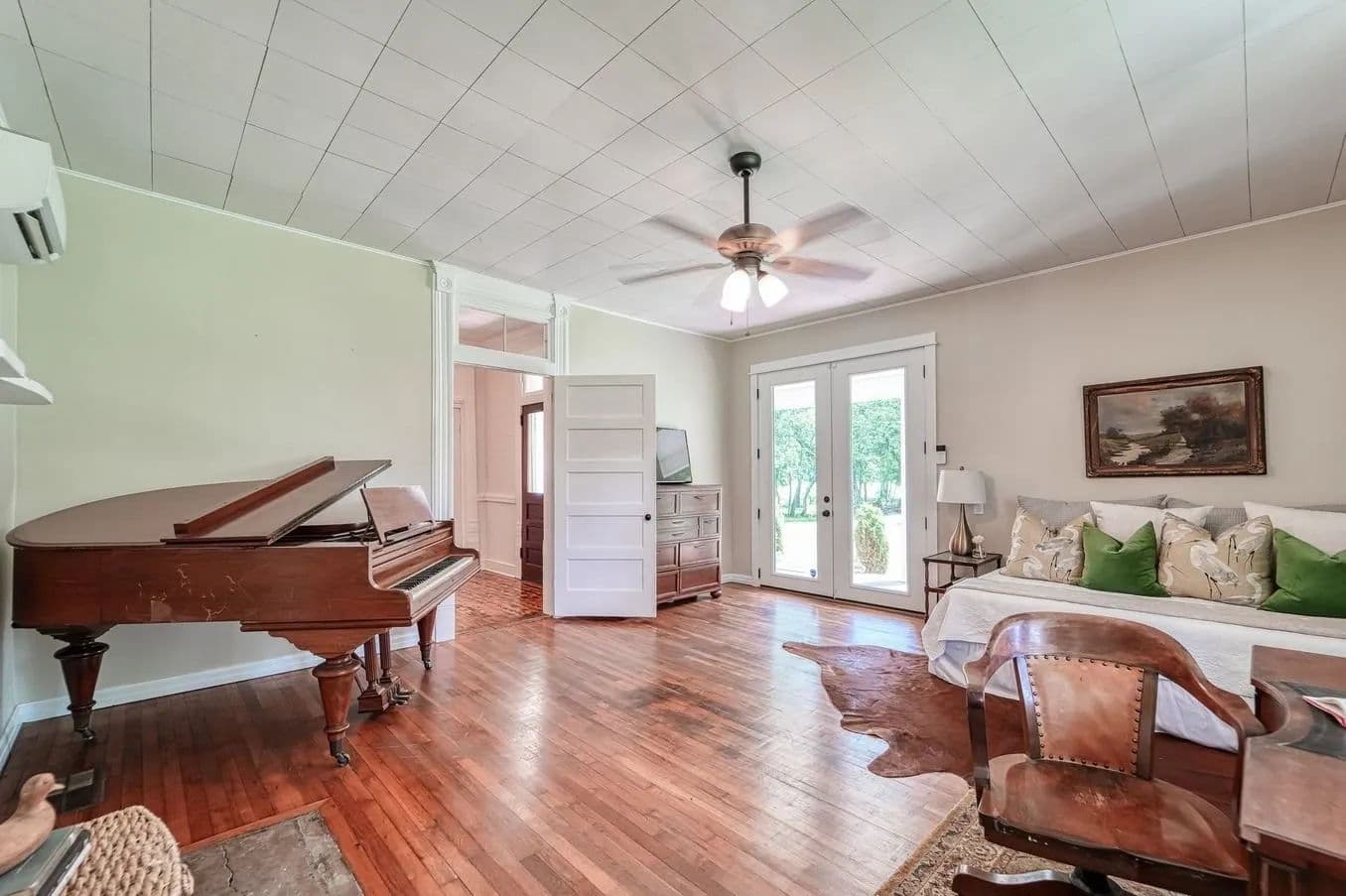 From the kitchen window, you’ll look out over a sunflower-covered dove field, rows of corn, the stocked pond, and pastureland that gently rolls toward Cypress Creek. The spring-fed pond is bordered by an 8± acre pasture on one side and a 3± acre dove field on the other, offering both beauty and function. A short walk out the back door leads you to a wooden footbridge that crosses a year-round spring that begins just behind the house—the original water source for the home. The spring flows through the property and eventually feeds into Cypress Creek. Across the bridge lies the pond where you can catch bass, brim, and crappie.