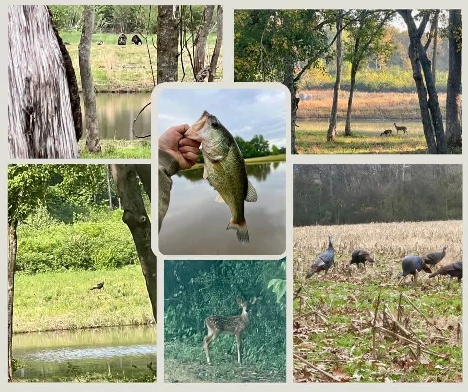 The balance of the acreage consists of mature hardwoods. Since 2019, the current owners have managed the land with wildlife in mind—selective harvesting and habitat improvements have created an ideal setting for observing whitetail deer, turkey, wood ducks, and geese from the comfort of the wraparound porch.