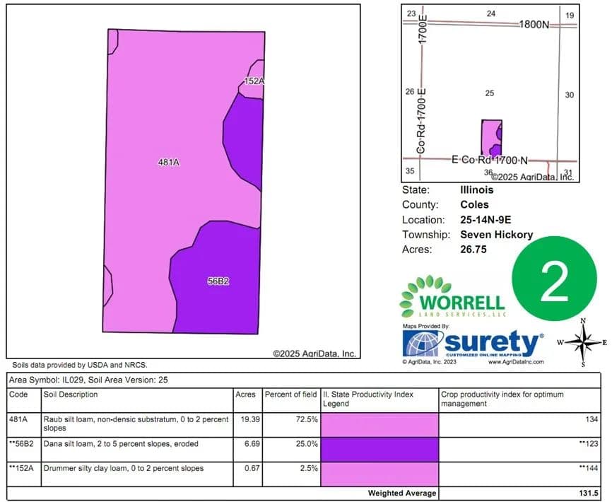 • Property Location: Coles County, IL Section 25 – Township 14N – Range 9E