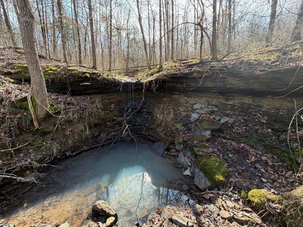 Tucked deep within the timber is a breathtaking rock bluff with an overhang and a waterfall spilling into a clear pool below, forming a small natural swimming hole. It is picture-perfect. Peaceful. Secluded. An unexpected treasure hidden within the woods.