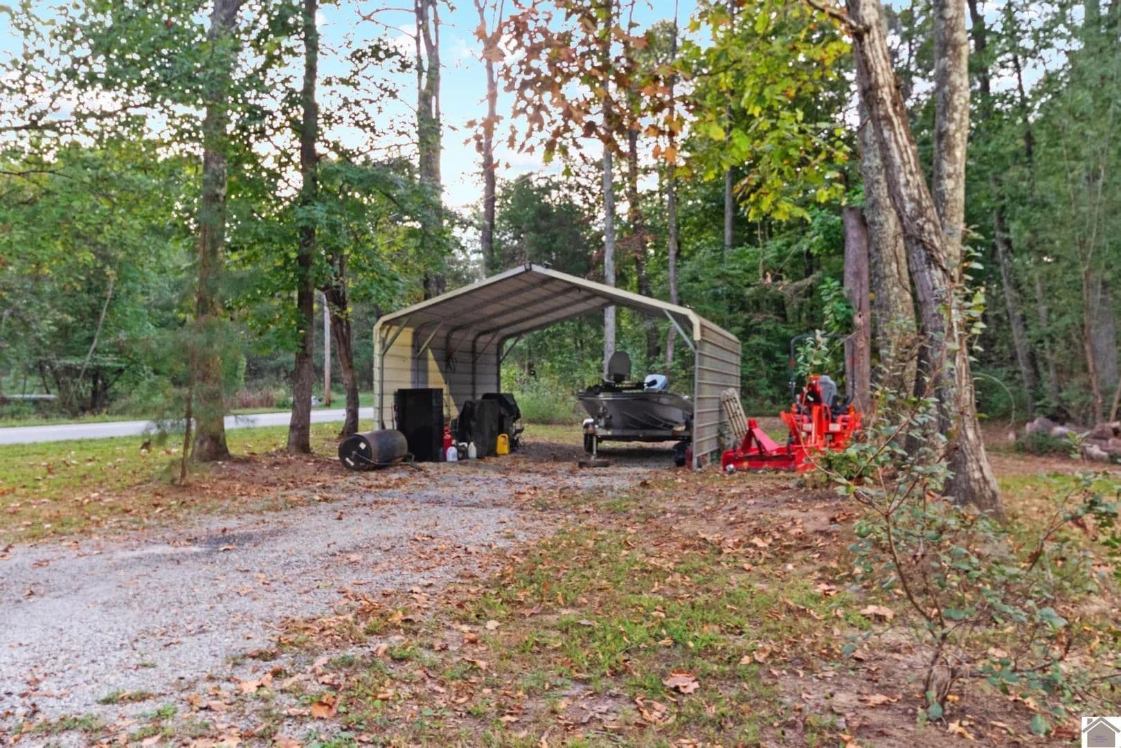 20 acres in Kuttawa, Ky. Plenty of room for hunting! Minutes from Lake Barkley, and I-24 access. Built in 2019, over 2,000 sq ft. of living space. Features open concept, kitchen, dining, living room and a bonus family room, 4 bedrooms, 2 bathrooms. Master suite is meant for comfort, double vanity, walk in shower, soaker tub, walk in closet. Second bathroom is equipped with 2 vanities and a shower/ tub combo. Whether you are a growing family or need lots of space, this is move in ready with peace of mind. Make lots of plans for hunting that is already set up with deer stands and feeders. A cleared off building spot behind the home. Storage building and carport too.