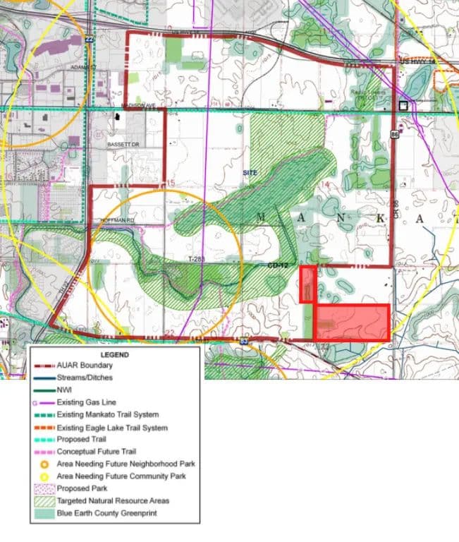 Formerly Ag. Zoned, this family-owned property is situated for prime Multi-Family and Office/Retail expansions. This large parcel is near up-and-coming development sites for Multi-Family, Senior Housing, Retail and Office. The City of Mankato has worked on a long-term zoning plan to position the East Infill District an exceptional location for new and existing businesses. Nearby retail strips and national brands paired with its central and accessible location make the East Infill District a prime development opportunity. These parcels can be subdivided for smaller use.