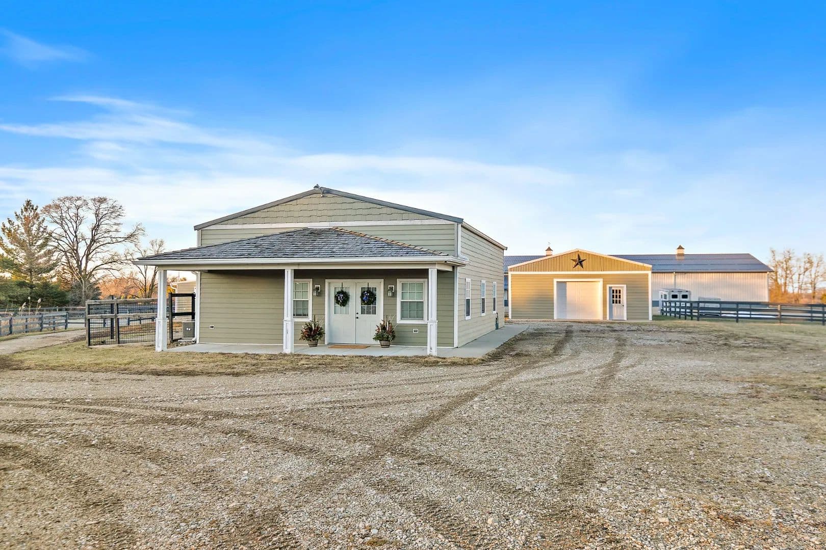 EQUESTRIAN TRAINING FACILITY - 15 ACRES; 21 STALLS, INDOOR AND OUTDOOR ARENAS, PRIMARY RESIDENCE AND BUNKHOUSE; ZONED AG. This boutique equestrian farm offers the perfect balance of professional-grade amenities in a smaller scale operation. Every structure has been thoughtfully designed to support efficient barn management while providing comfort for both horses and people. The MAIN STALL BARN includes 19 matted stalls with tongue-and-groove construction, individual lighting, electric outlets, water hookups, and blanket bars. Select stalls offer windows, while the insulated and heated structure ensures year-round comfort. A dedicated feed and medical room and lean-to with 2 additional stalls and storage, enhance functionality. The INDOOR ARENA is 80x200 and was built by MORTON. It features quality GGT footing, three rows of lighting, two rows of fans, angled kickboards, sliding doors on both ends, and a service door. The arena connects seamlessly to a well-appointed barn complex that includes a heated and air-conditioned viewing room with kitchenette, bar seating, and half bath. The OUTDOOR ARENA is 100x200 also with GGT footing and automatic sprinkler system. Other property amenities include 4-board white PVC fencing around the perimeter, 7 fenced pastures, 2 all-weather turnouts, 2 scenic ponds and hay field. Supporting structures include a 28x64 HAY / EQUIPMENT BARN with concrete aisles, floor drains and overhead doors. A separate BUNK HOUSE APARTMENT offers 1,200 sq ft of flexible living options for employees or guests with a front porch, slate flooring, full bath, kitchenette, and sleeping spaces. The MAIN RESIDENCE is a FULLY RENOVATED BRICK RANCH featuring high-end finishes such as Viking and Sub-Zero appliances, white cabinetry, granite countertops, a farmhouse sink, hardwood floors, detailed trim, and mission-style doors. It offers a total of 2600 square feet of finished space with 3 BR / 2.5 BA. The finished basement is an excellent in-law or related living suite with a family room, kitchenette and room that could be a 4th BR. The two-car attached garage completes the home. Only 30 minutes to O'Hare International Airport and 45 -75 minutes to popular showgrounds of Silverwood, Lamplight and Ledges. Sellers have invested an additional $1,825,000 into this property since they purchased. This is a rare opportunity acquire it for less than their total investment. A detailed list of upgrades and improvements is available upon request. Own a refined yet manageable equestrian facility ideal for professional trainers or serious horse owners seeking quality, efficiency, and comfort. Easy to show...come take a look!