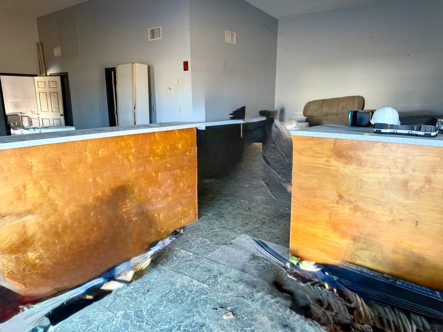 The primary building offers approximately 4,987 total square feet, with 3,787 square feet on the ground level with a 10 ft canopy on the front of the building. The first floor includes two large shop bays with roll-up doors, a half bath, and a spacious storage/tool room equipped with an additional window A/C unit. Also on the main level are a reception area with front desk, a second office, a full bathroom, a full kitchen, and a large separate room suitable for storage or a break room.