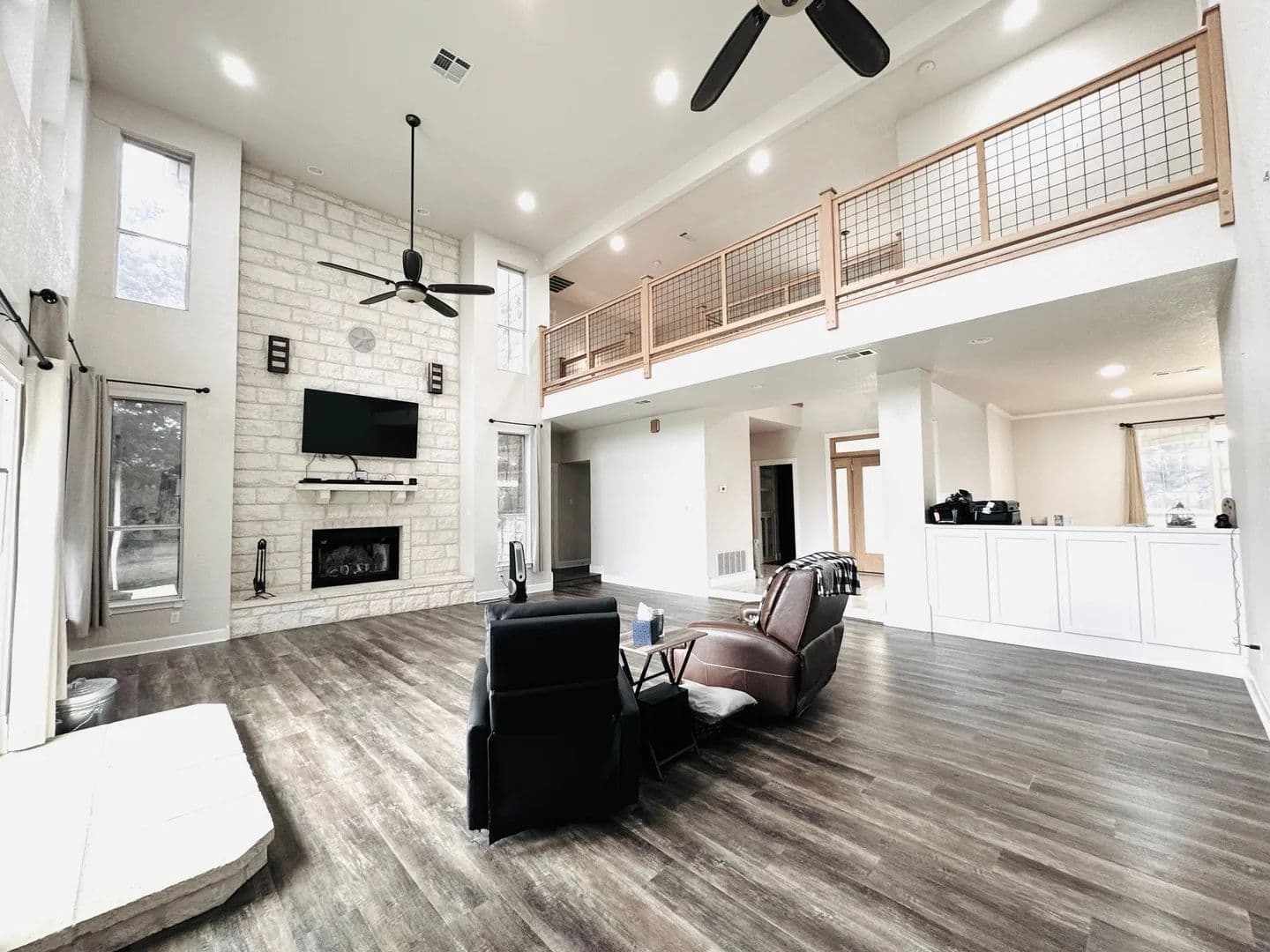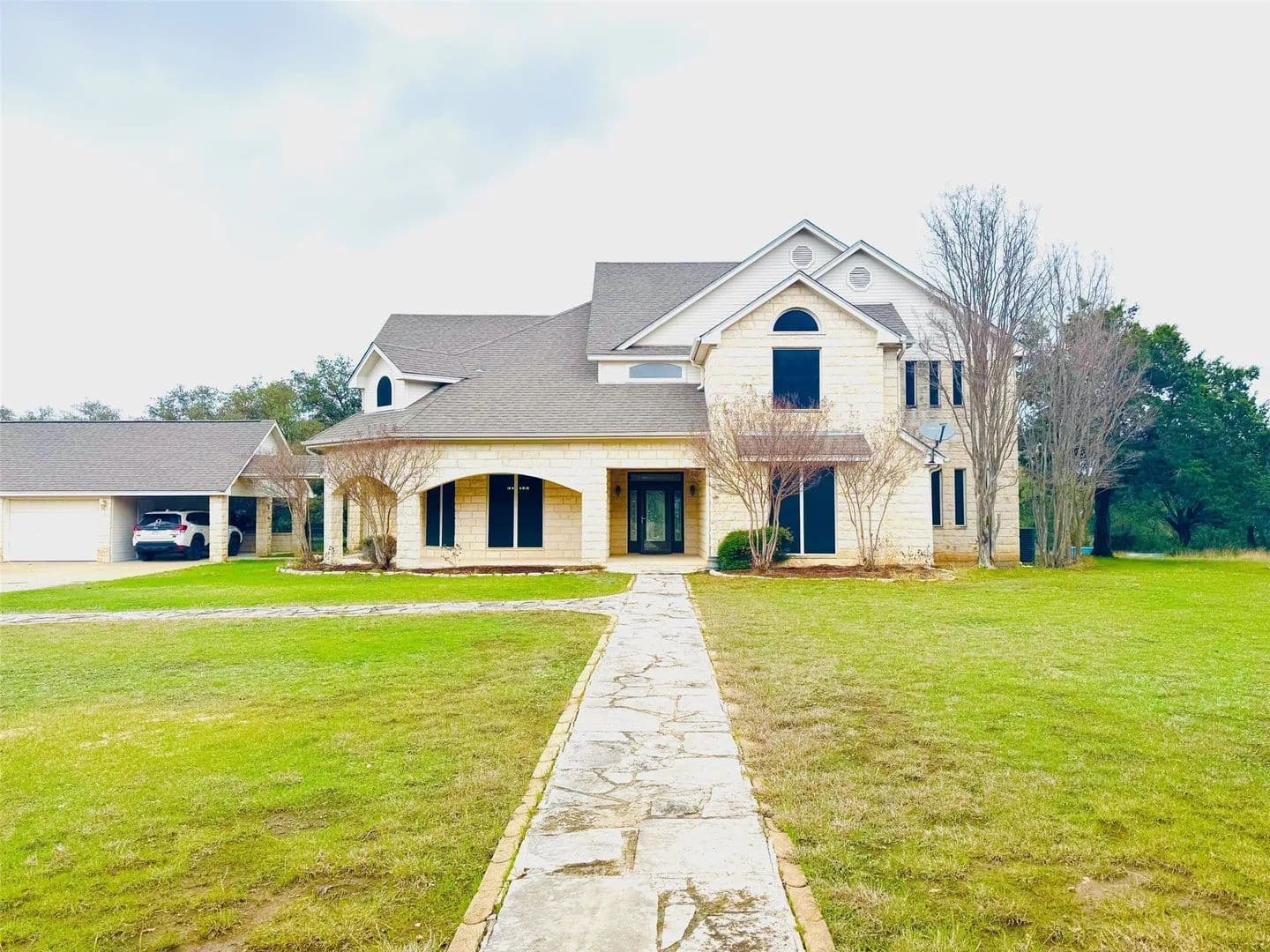 Ready to own your piece of Texas? This is it. This impressive 4321 square foot two-story rock home rests on 57 acres of prime land, delivering a rare mix of luxury with peaceful country surroundings. The home offers four bedrooms with three full bathrooms plus a half bath. A spacious living area features soaring ceilings with a striking rock wood-burning fireplace, creating a warm inviting space. A flex room near the kitchen provides the perfect setting for a home office or formal dining.