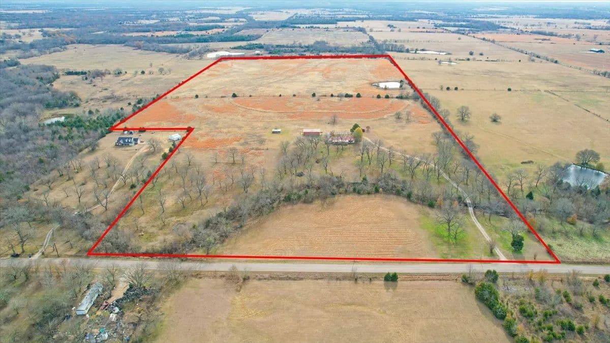 Country Living or great investment on 73.9 Acres with Shop, Pond, Creek & Paved Road Frontage. The home features 3 bedrooms, 2 bathrooms, and two spacious living areas, along with a metal roof approximately 10 years old. Enjoy outdoor living year-round with a 12x50 covered front porch and a 12x50 covered back porch, and in addition, a 24x24 carport. Additionally, this property includes a 30x60 metal shop, a 24x30 shed barn, and a 10x14 storage shed, providing ample space for equipment, livestock needs, or hobbies. A gravel driveway leads to the home, while 975 feet of paved road frontage offers easy access. This property would make an exceptional investment property for development as well. With the location its has tremendous opportunities waiting just ahead. The land itself is highly versatile, featuring scattered pecan trees, a creek, and a fenced back 40 acres with a ½-acre pond. The rear acreage has previously been used for hay production and offers strong potential for continued agricultural use, livestock, or recreational enjoyment. Conveniently located approximately 4 miles from Choctaw Casino & Resort and about 8 miles from shopping and amenities. This property also provides reasonable access to regional hubs including Sherman (28 miles), Plano (74 miles), Oklahoma City (155 miles), and Tulsa (150 miles), DFW (85 Miles). Whether you’re looking for a full-time residence, small ranch operation, or a versatile acreage with strong infrastructure already in place, this property offers space, privacy, and location all in one.