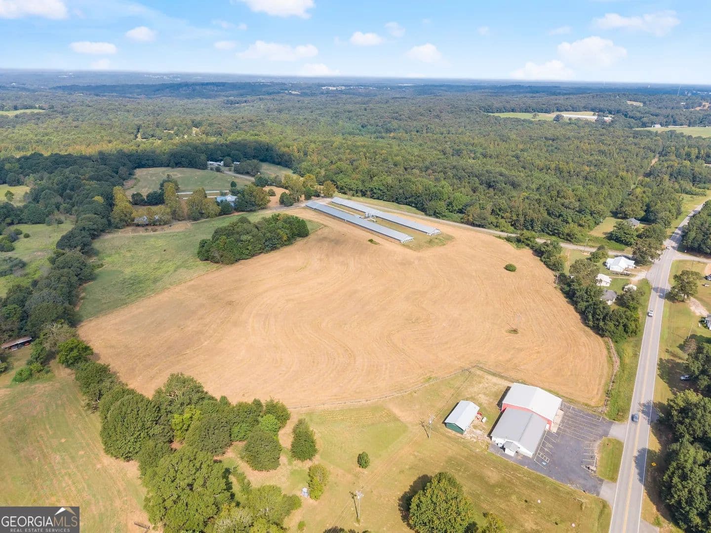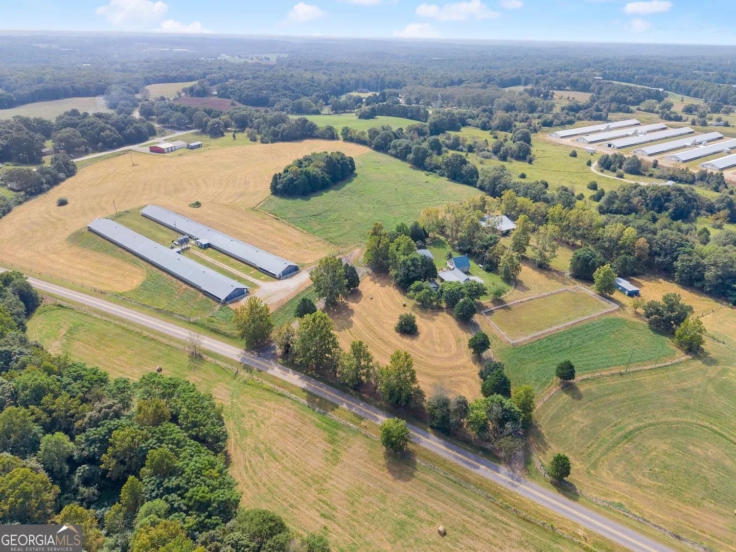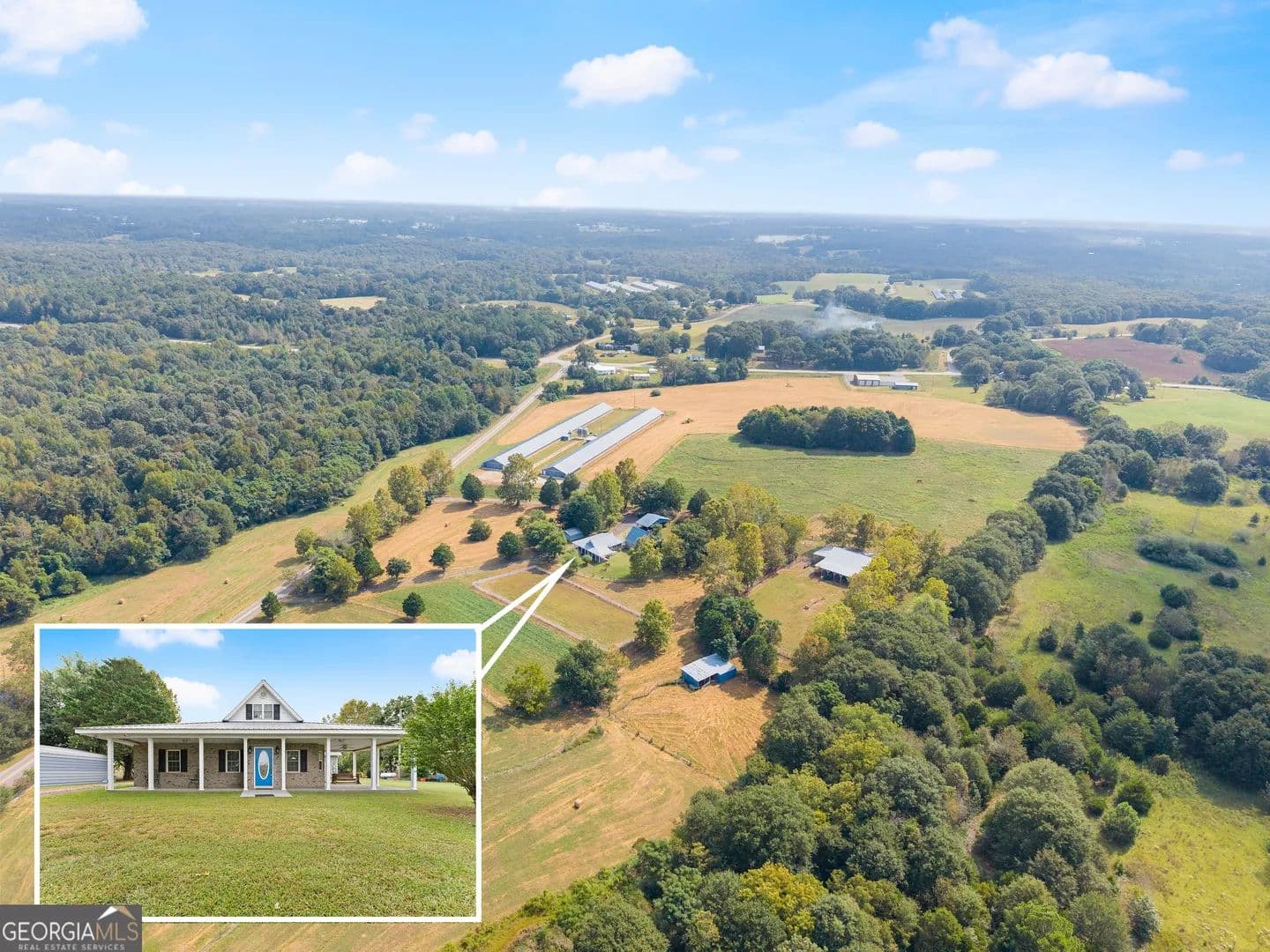 Welcome to your private retreat on 48 acres of countryside living! This brick 3 bedroom, 3 bath home offers comfort and convenience with a whole-home propane generator and well water with public water access. The main home is complemented by a spacious guest house featuring a loft that overlooks the great room, complete with a fireplace, pool table, and a full bath perfect for guests or entertaining. Equestrians and livestock enthusiasts will love the two barns with power, including a main barn with 7 stalls, a riding area, and cross-fenced pastures with multiple lots that each have water access. The land also features a stocked pond with bluegill and bass, open pastureland for livestock, and two upgraded poultry houses ready to return to production. This rare property combines functionality and recreation, offering everything from farm-ready infrastructure to outdoor leisure. Whether you dream of a working farm, horse property, or a private getaway, this estate is move-in ready and equipped for your vision. **24 hour notice for all Showings**