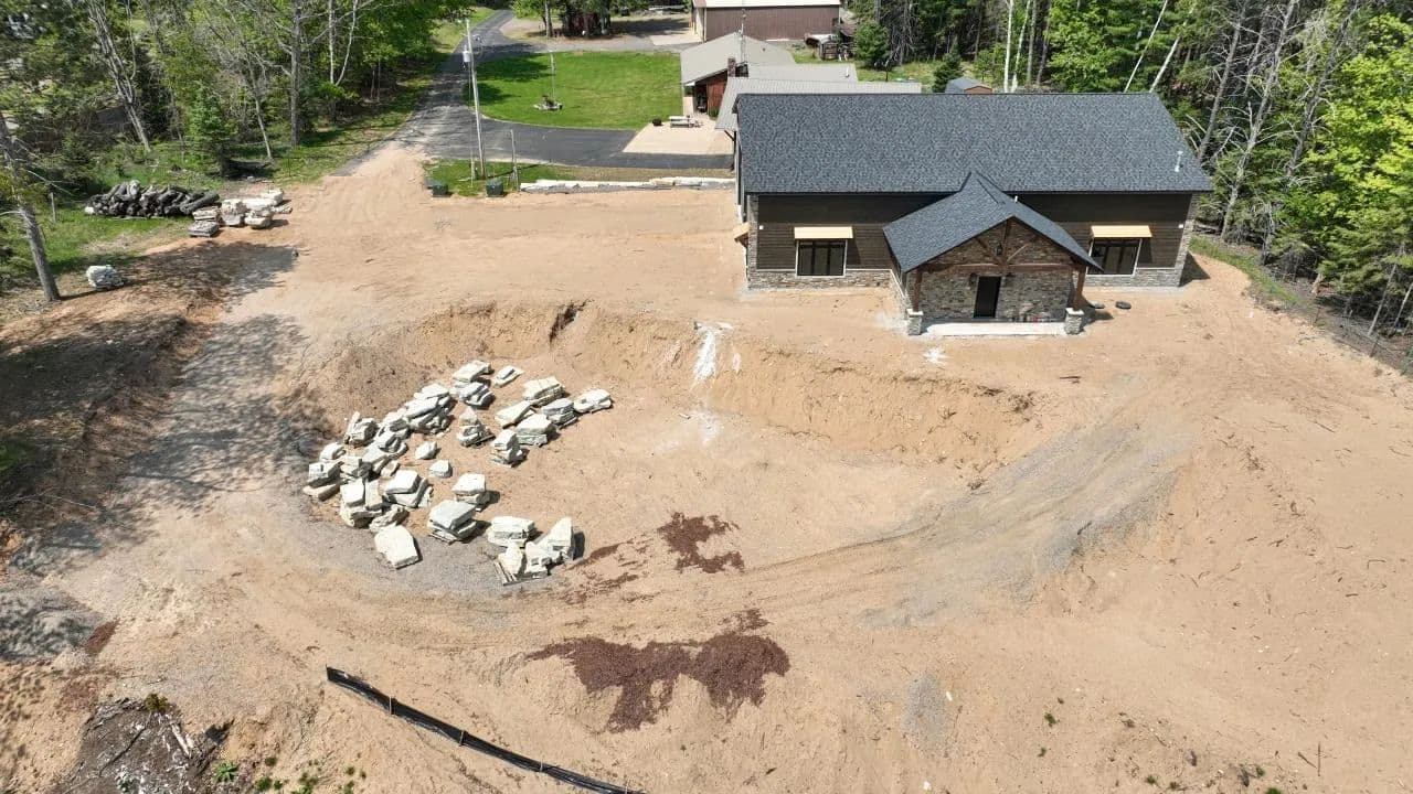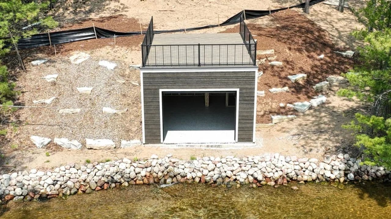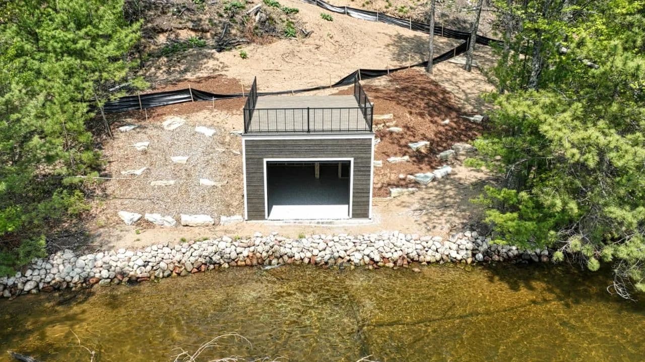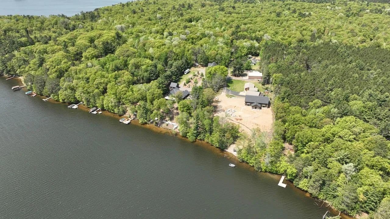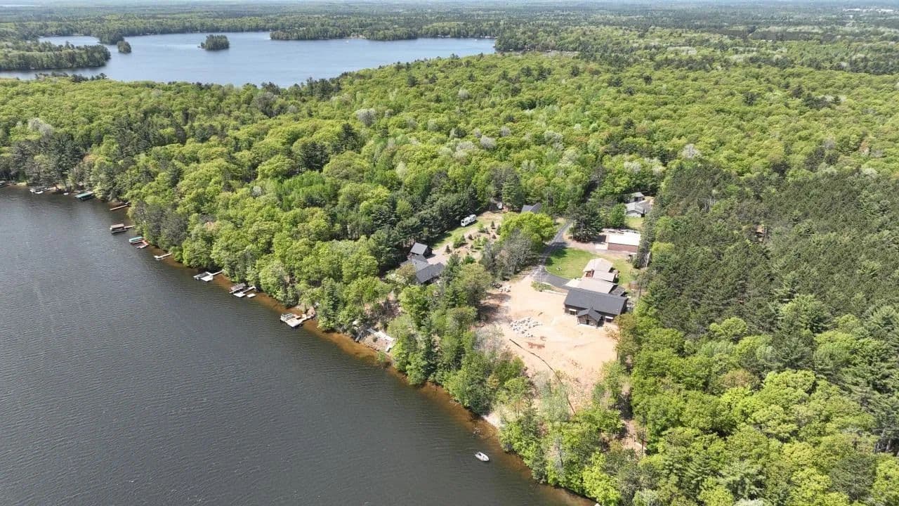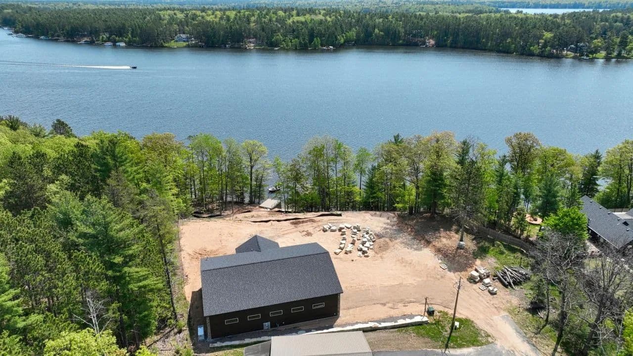 An amazing property offering 209+ ft of sand frontage on Catfish Lake, on the Eagle River Chain. Already on the property is a beautiful fully insulated 3,848sq.ft. building with a kitchenette with quartz counter tops, new appliances, custom cabinets, tile floor and ½ bath. The building has in-floor heated epoxy floors throughout, two 14’ doors, wired for sound, TVs and security, and large windows to capture amazing lake views. The property’s home building site has been cleared for a walkout, and a 4-bedroom septic system and full-property generator are included. At the edge of the water is a newly constructed dry boathouse with a large upper composite deck to enjoy the panoramic views. The boathouse interior walls are finished with white shiplap and the floors epoxied to match the large building. This unique property is located less than 3 miles from downtown Eagle River, at the end of a private road. See doc tab for Additional Features.