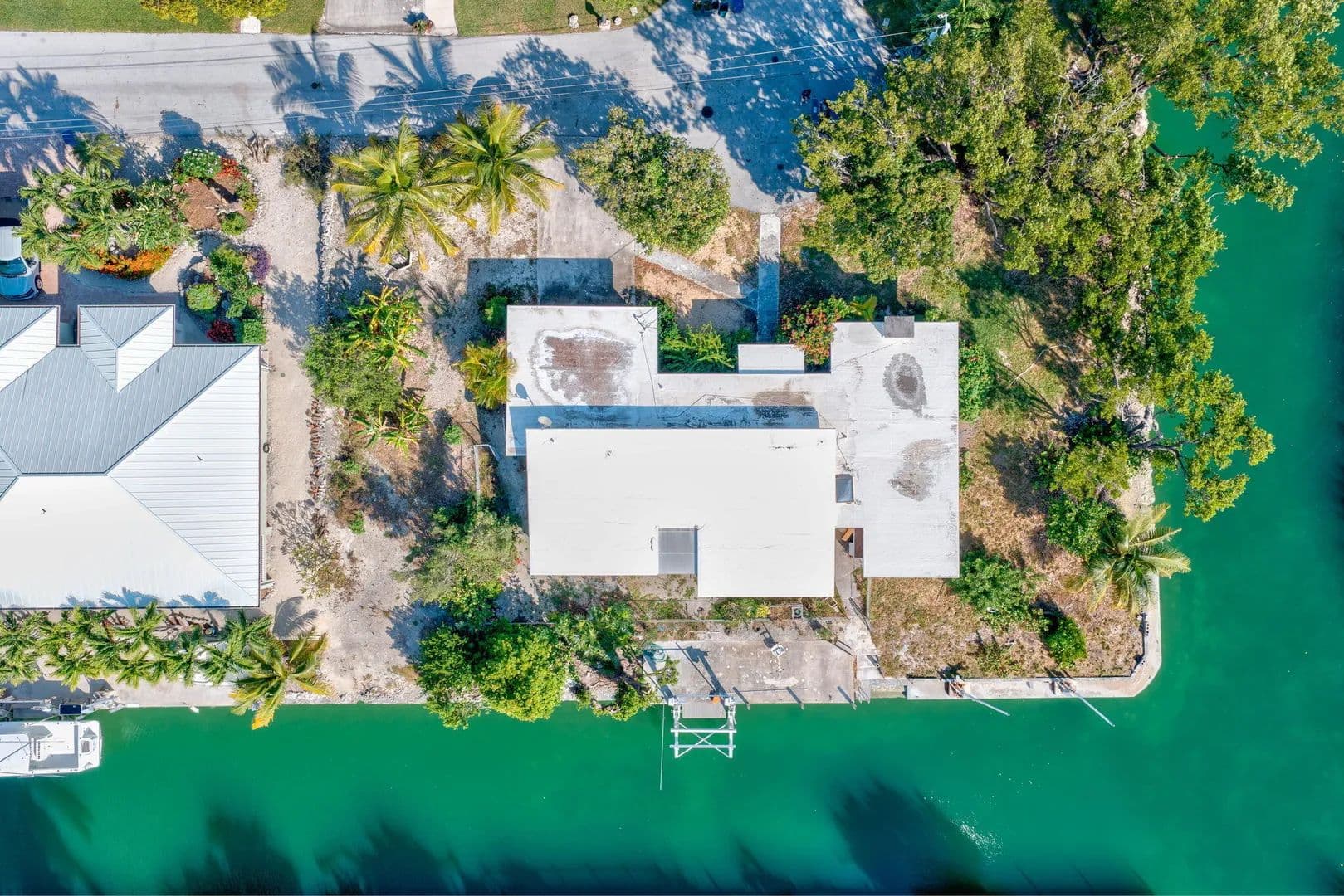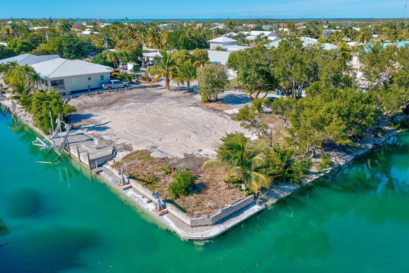 An exceptional opportunity awaits in one of the Lower Keys' most desirable neighborhoods. This oversized corner lot is ROGO exempt and comes with approved building plans already on file with Monroe County, allowing you to skip the waiting line and begin building your dream home immediately. The existing structure has been demolished, clearing the way for a seamless transition from vision to reality. Set on a spacious corner canal parcel, the property boasts approximately 280 feet of water frontage, providing panoramic canal views and generous dockage potential. A brand-new 17,000 lb. boat lift is already installed, ready for your vessel. With deep-draft oceanside access just moments away, this location is ideal for boating enthusiasts who need quick and easy access to open water. Cudjoe Gardens is one of the few neighborhoods in the Lower Keys offering a full-service marina, a public boat ramp, and the locally loved Bent Prop restaurant, all within the community. Whether you're ready to build your full-time residence or a seasonal escape, this property offers a rare chance to create a custom home in a prime waterfront setting without the long ROGO wait.
