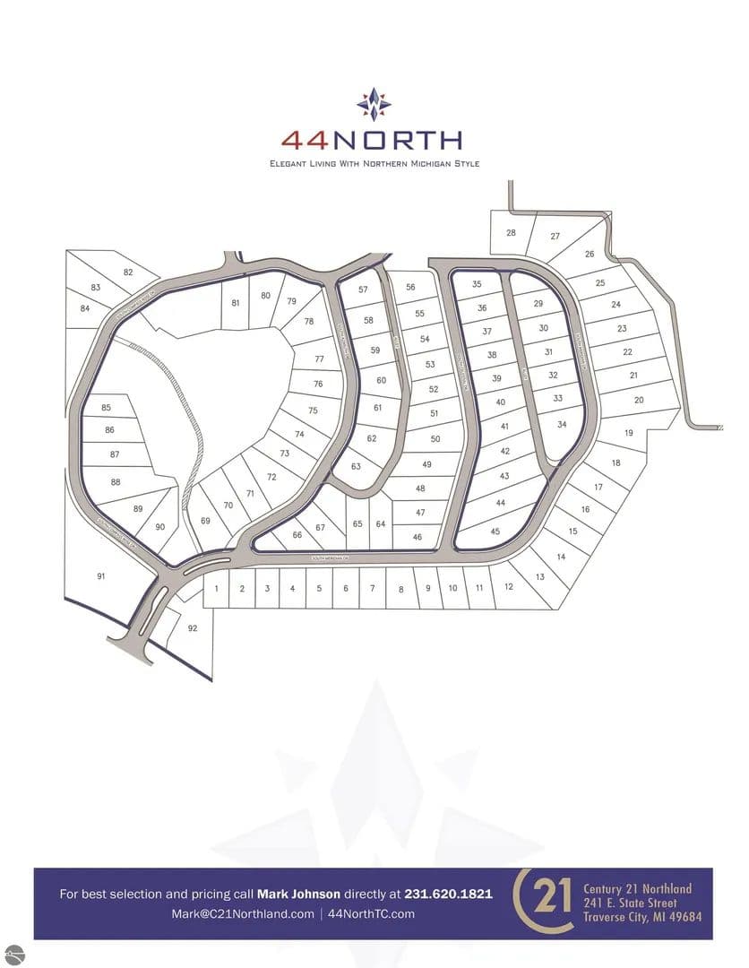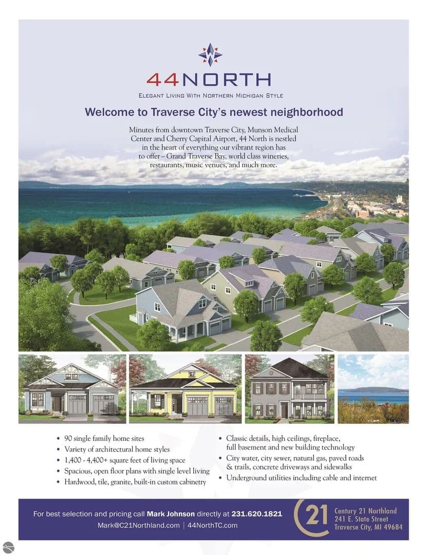 44 North. Traverse City's newest neighborhood. Location is best of both worlds, at the base of the Leelanau peninsula yet still within Traverse City with amenities it has to offer. Neighborhood features, city water, city sewer, TART trail, underground utilities, paved roads. Located 1.5 miles from Downtown Traverse City, Munson Hospital, Harbor West Marina and Clinch Park Marina. Easy entrance and exit from the neighborhood. Seller is a Licensed Real Estate Agent in the State of Michigan