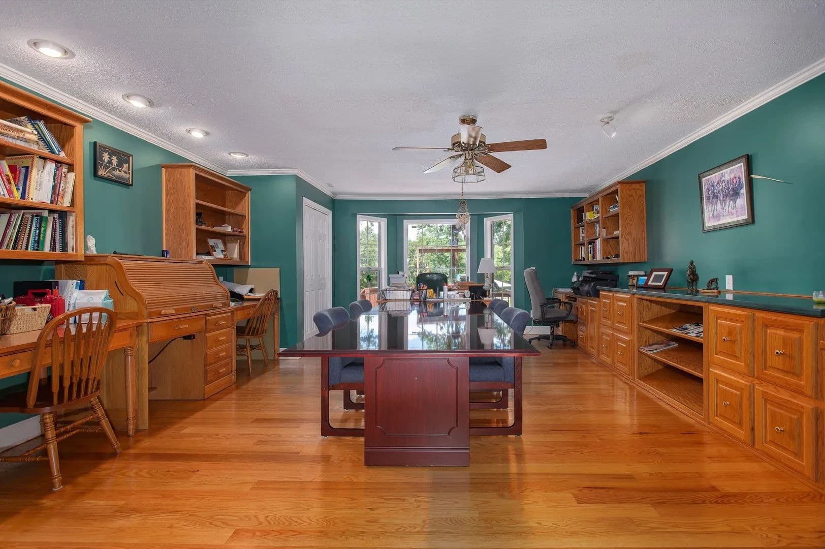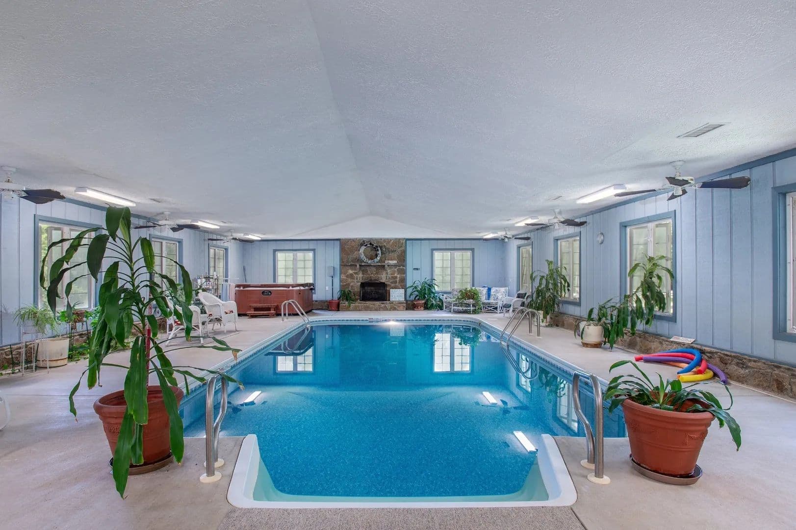 The property is designed to accommodate a variety of lifestyles, featuring 2 barns (new roof & gutters) w/multiple potential uses, such as equestrian, an indoor pool for year-round enjoyment & beautifully maintained grounds. All pastures are fenced & cross-fenced w/white vinyl fencing, offering added versatility. Ceiling fans are abundant throughout the home (except the den) pool room & outdoor areas. A gas dryer & Rinnai instant hot water system provide modern convenience, while both city water & a private 200-foot deep well ensure reliable water access. With ample parking spaces, this estate is thoughtfully designed for both comfort & functionality.