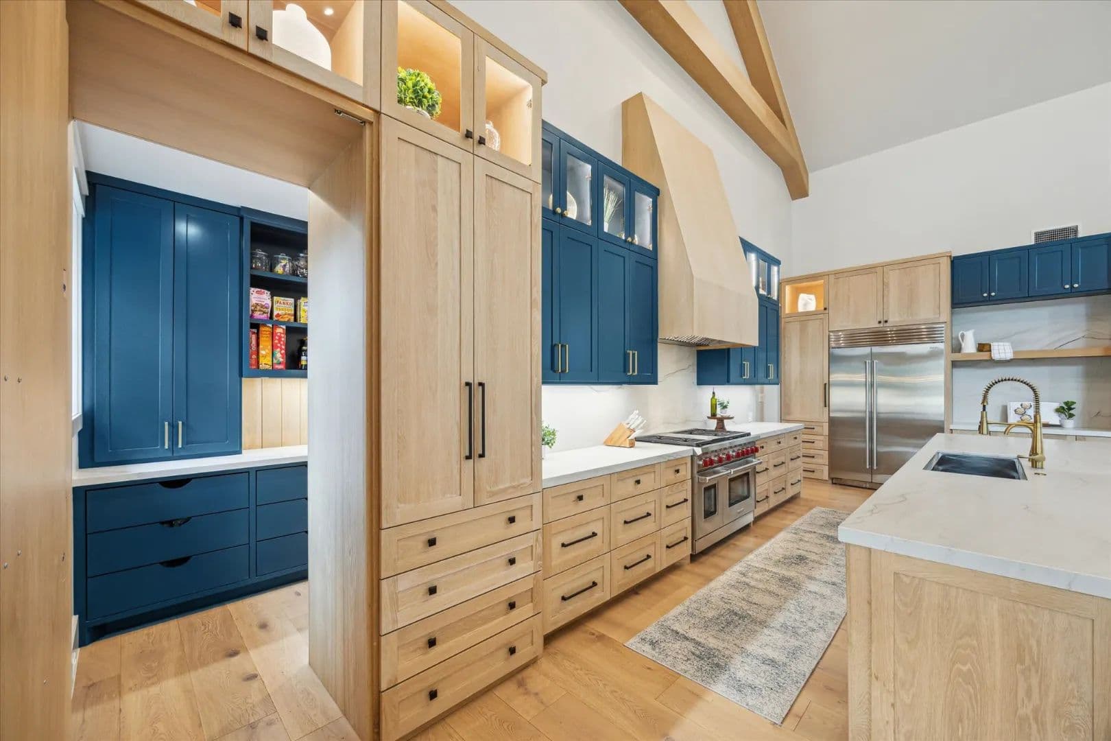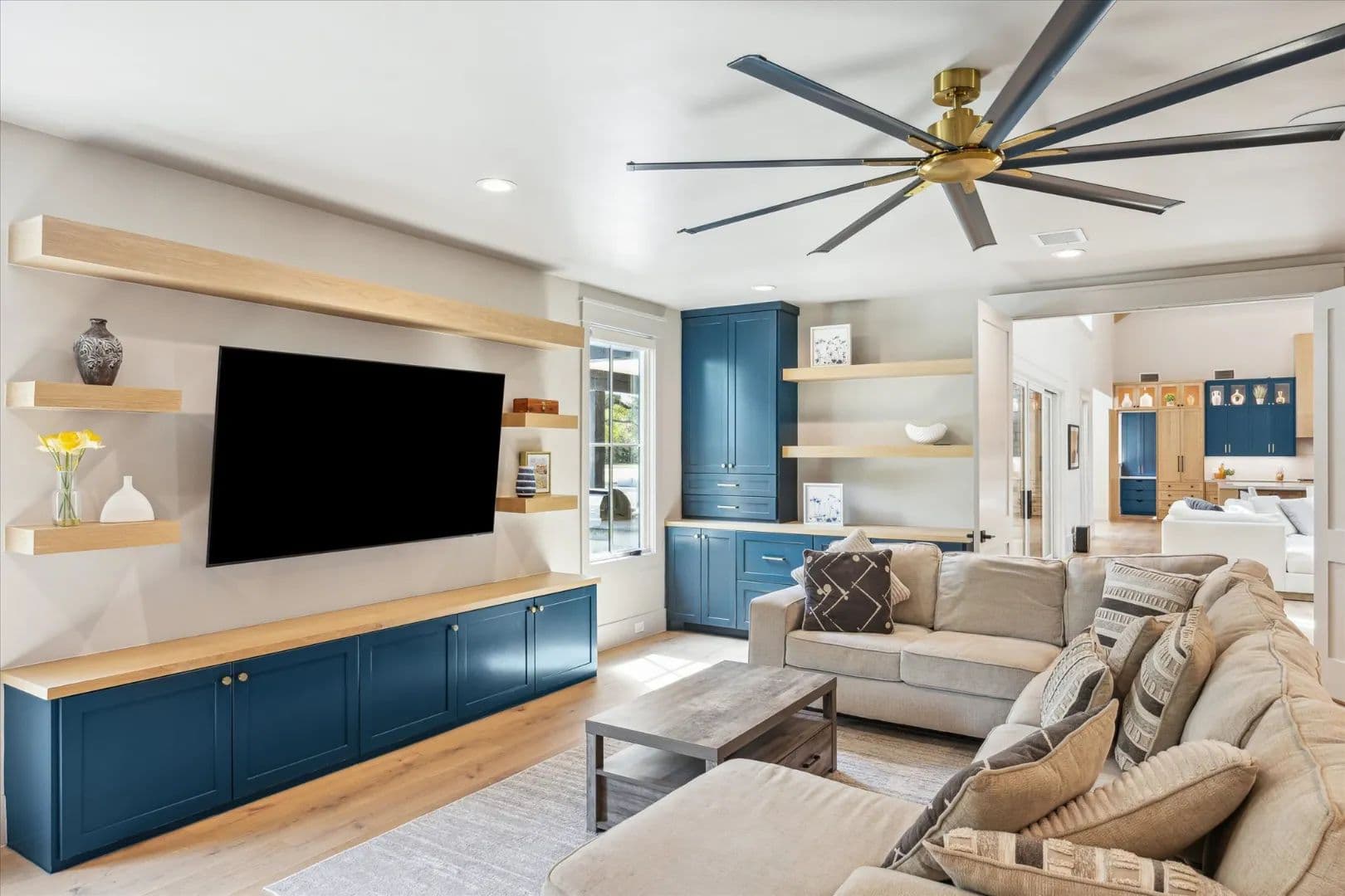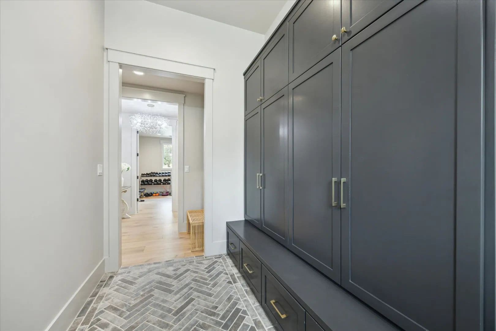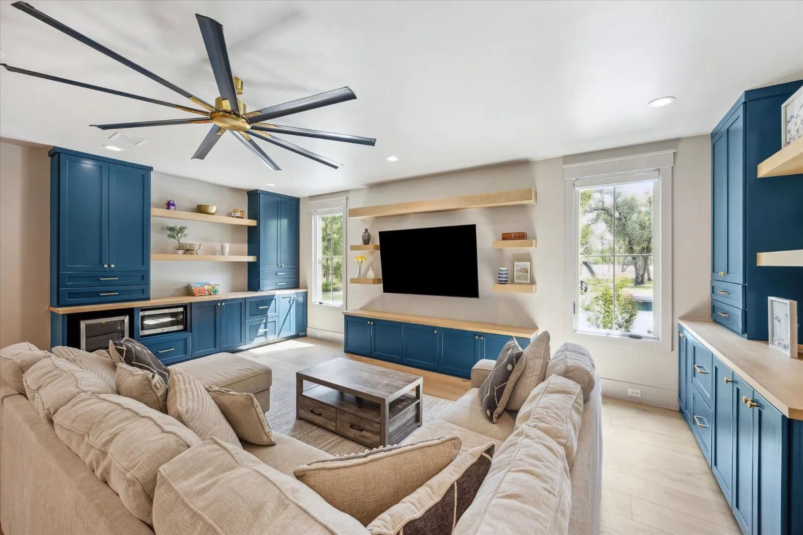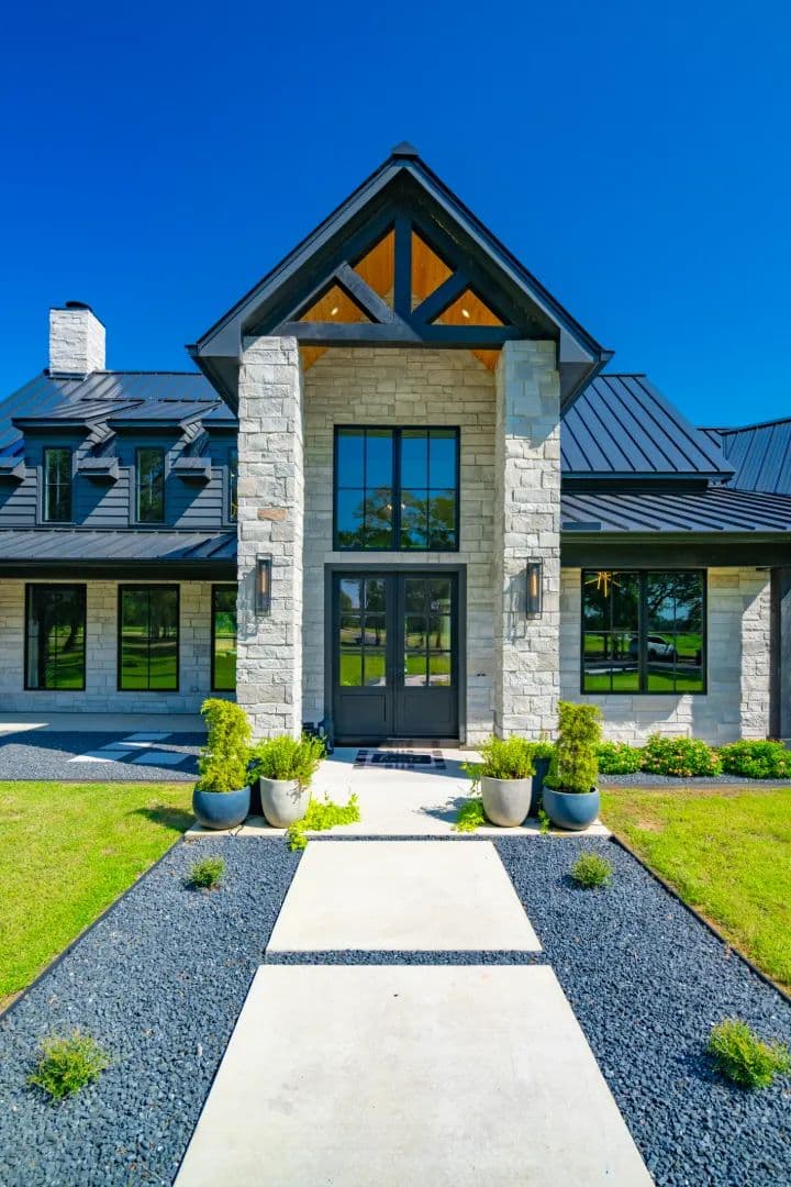 The custom 5-bedroom home was meticulously designed and built with family and entertaining in mind. As you step through the front door, you’re greeted by a massive living room, dining room, and kitchen, molding into a bright, open-concept area. To your right, a private office provides a quiet retreat for work or study. Vaulted ceilings above the connected kitchen, dining, and living areas, and large windows flood the home with natural light and long shadows, bringing the beauty of the surrounding landscapes inside. A breakfast room off the kitchen offers beautiful views of the pool, backyard, and pond. The gourmet kitchen features a full range, a walk-in pantry discreetly hidden behind faux cabinet doors, a massive island, and endless cabinet space. Just past the kitchen, a convenient half bath, laundry room, and an expansive mud room lead directly to the sheetrocked and well-lit garage. A versatile converted workout room offers flexibility as an additional office or customizable space to suit your needs. The master suite, tucked away at the rear of the home, creates privacy with its own foyer and views of the pool and backyard. The master bath has his-and-hers sinks positioned opposite each other and is complemented by an extra-large shower and soaking tub. The family room, accessible from the living area, is designed for comfort and entertainment, featuring an oversized sectional, TV, and well thought out shelves and cabinets for books and board games. Hookups for a secondary laundry with a stackable set are thoughtfully included on this side of the house. Two large bedrooms with front yard views share a full bath off the family room, while two additional bedrooms are connected by a full Jack-and-Jill bath, perfect for family or guests. Wide-panel wood flooring flows seamlessly throughout the home, creating a warm, cohesive feel that ties the whole home together.