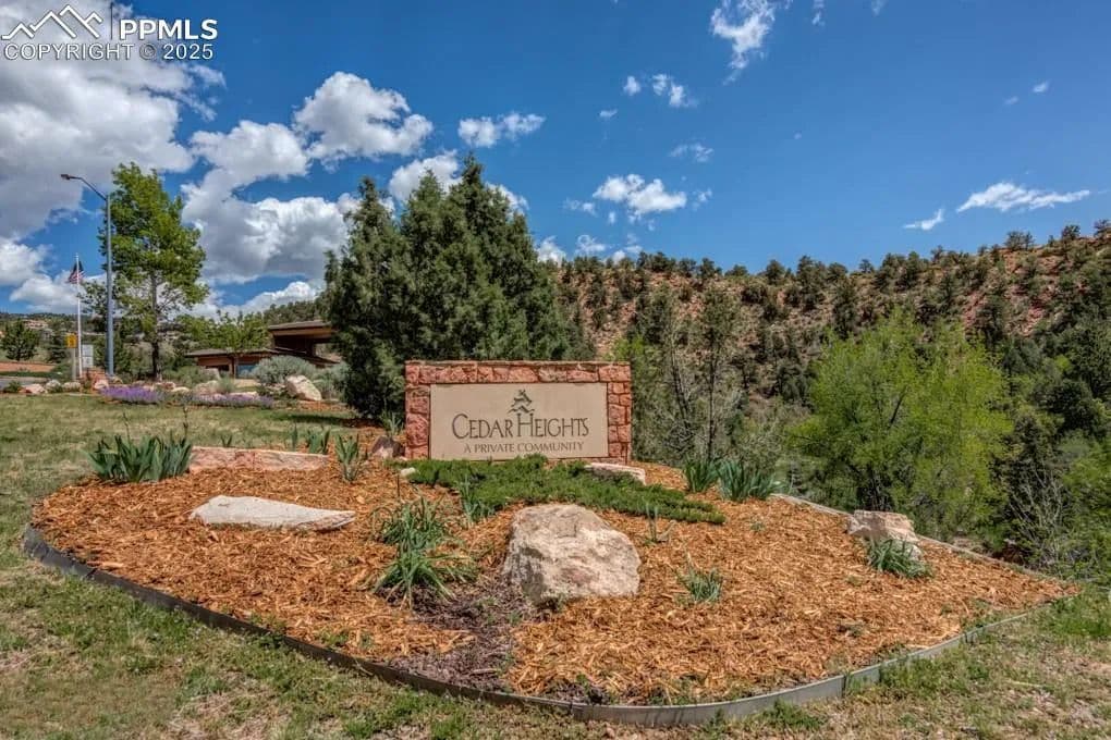 Only 10 minutes from downtown Colorado Springs, sitting at the base of Pikes Peak and neighboring both Cave of the Winds and Garden of the Gods, Cedar Heights is a dream come true. This one-acre lot offers the opportunity to build the perfect Colorado escape. Cheyenne Mountain can be seen to the south of the property, and there is potential for Pikes Peak views as well. All major utilities are provided by Colorado Springs Utilities and are in place underground, waiting to be connected. As a prestigious gated community, Cedar Heights offers 24-hour security, road maintenance, and snow removal in winter. The community spans over 900 acres and includes open space with private hiking trails, parks, and a playground. Nature is showcased beautifully with stunning rock formations and abundant wildlife.