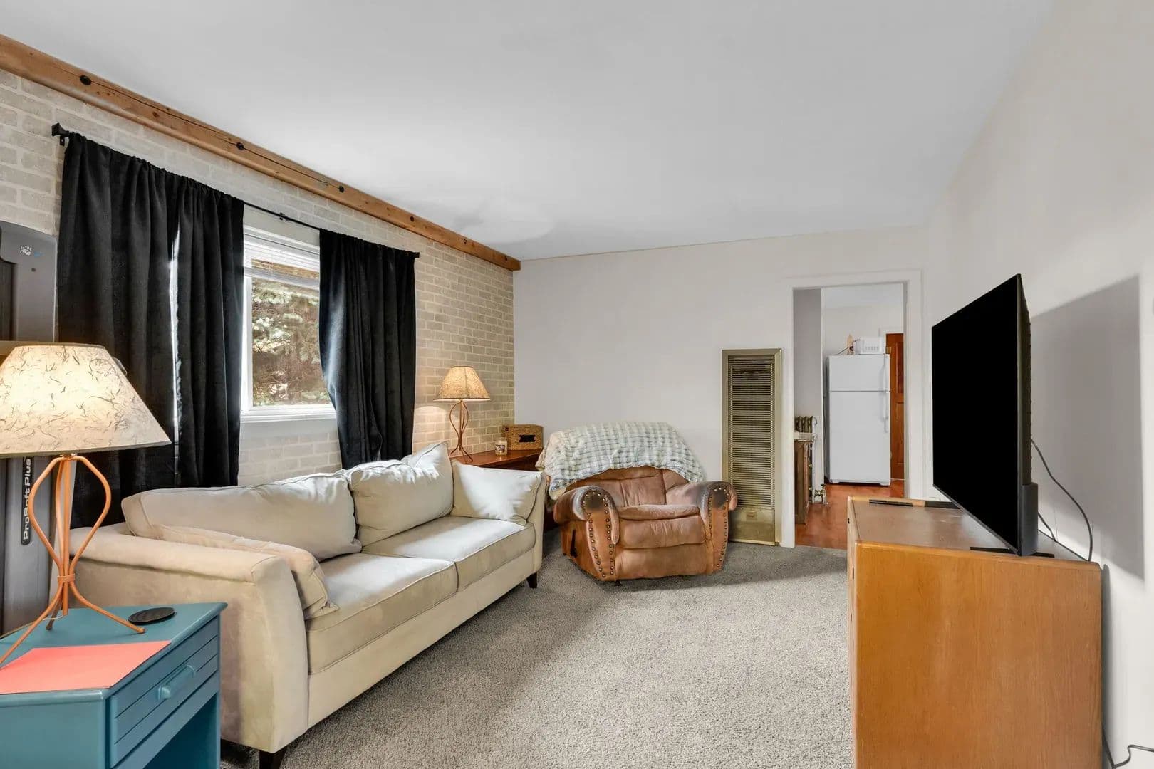 Unit 3 is located in the basement. It has a 2BR/1BA. It also has a covered porch area and a W/D, 775 sq ft.
