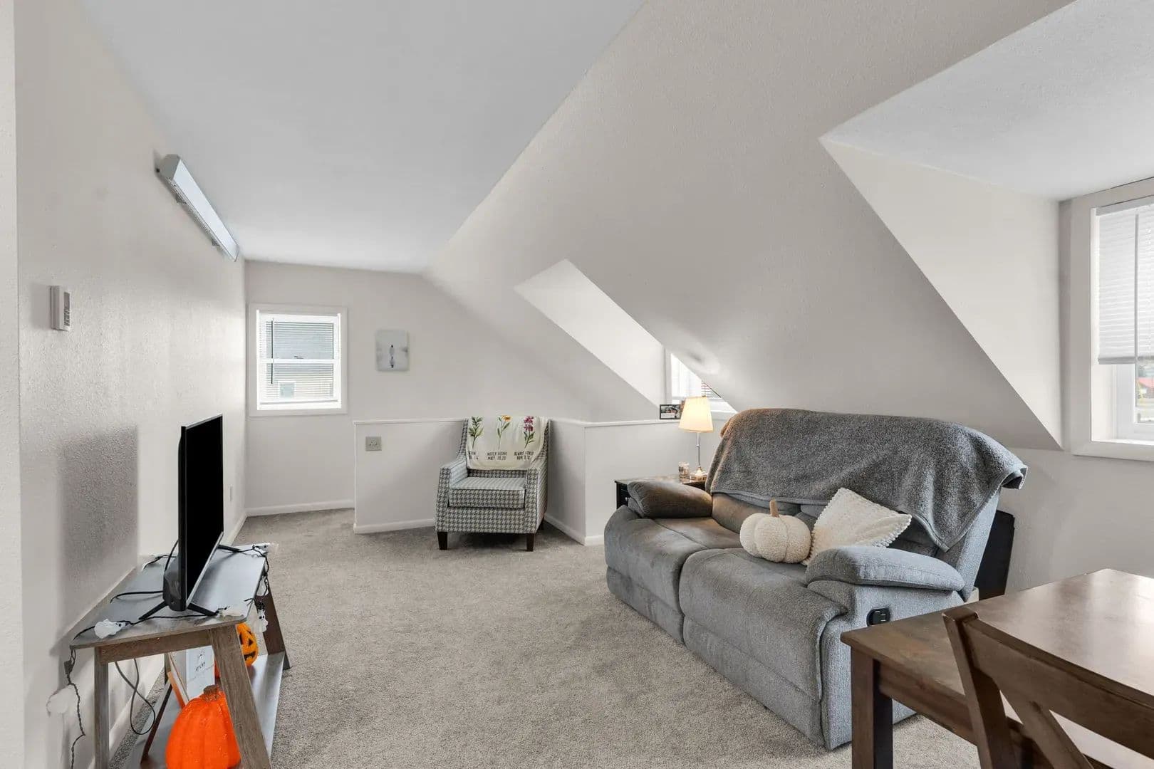 Unit 1-2 located on the 2nd and 3rd floors. It is a 2BR/2BA with a W/D and partially furnished, 1050 sq ft.