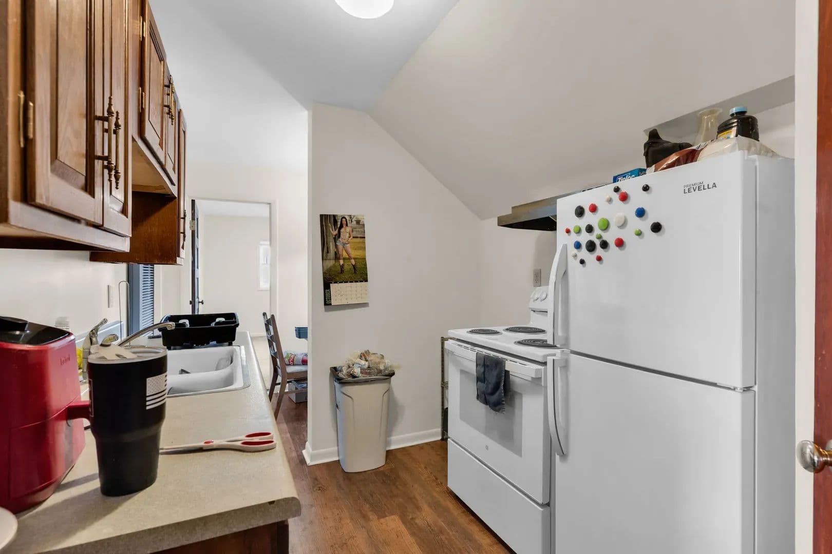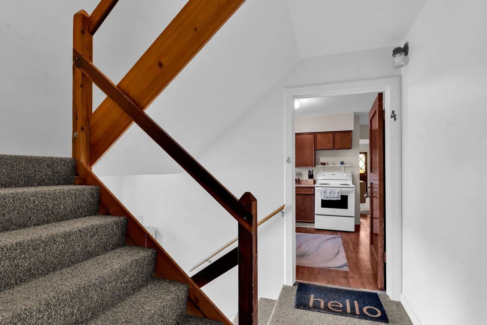 Unit 4 is located on the 2nd floor. It has 2BR/1BA. It has a deck and W/D, 775 sq ft.
