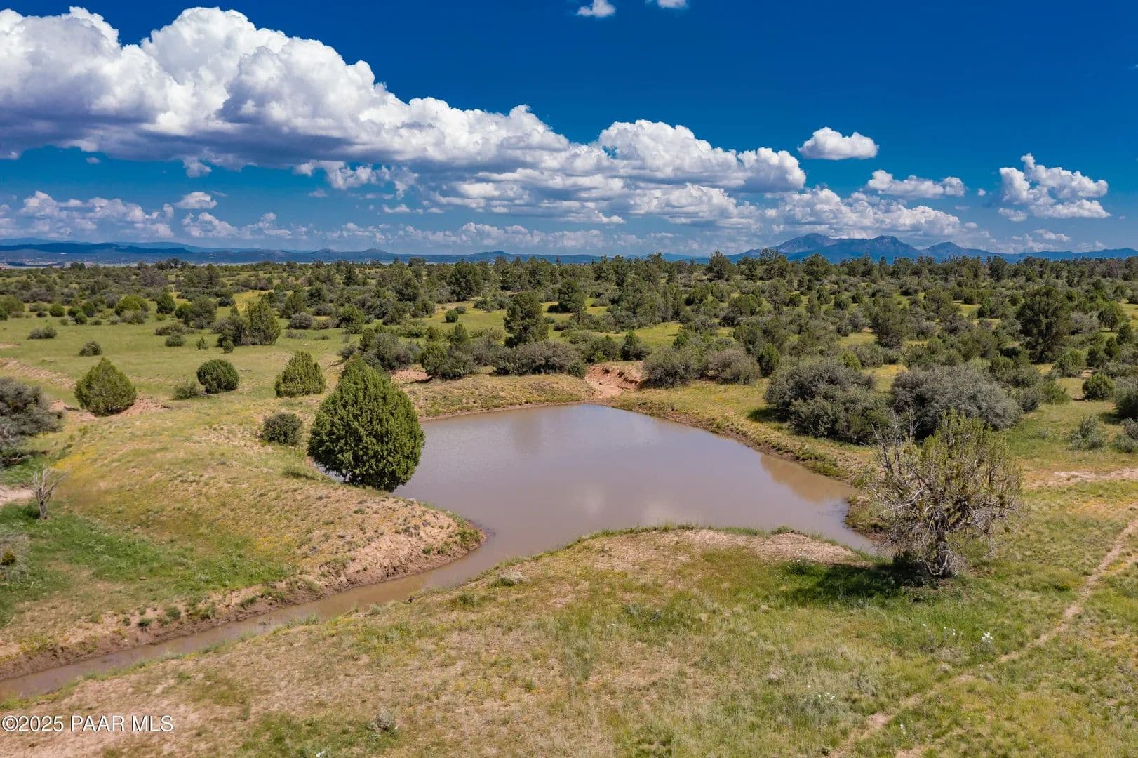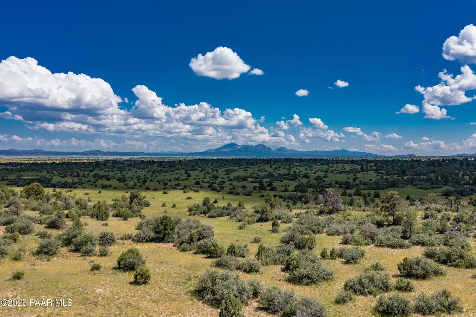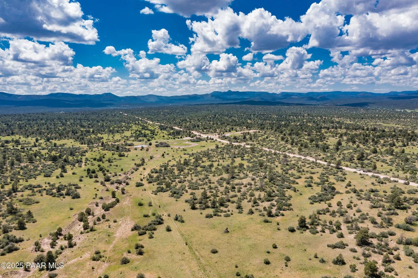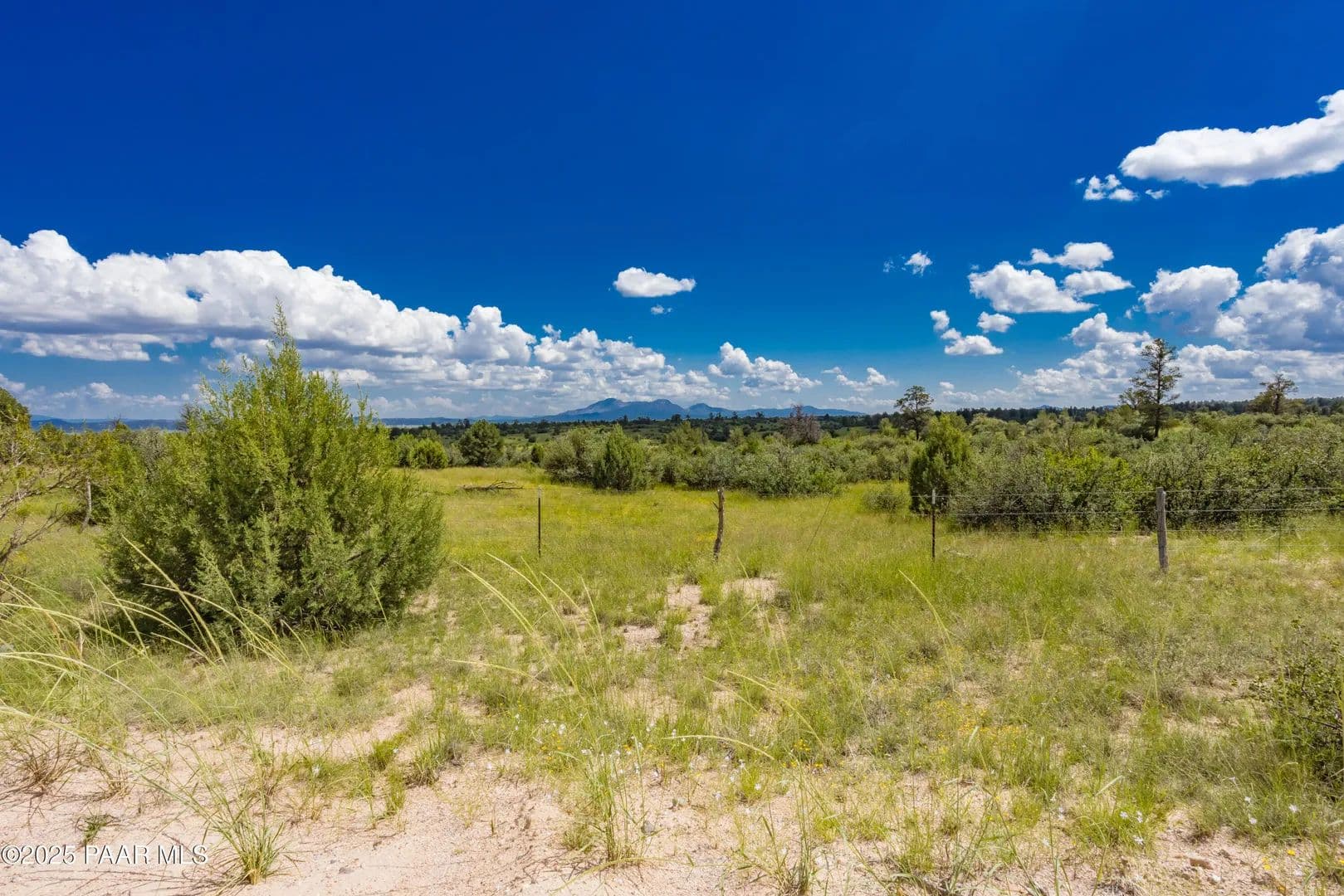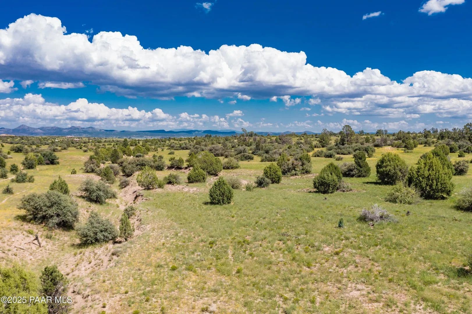 Spectacular 37-acre parcel in the gated Las Vegas Ranch Estates, offering paved roads, underground utilities, and access to Prescott National Forest within 1/4 mile--ideal for trail riding, hiking, or ATVs. The property features south and east slopes, an open meadow, scattered Pinion Pines, multiple elevated building sites, and outstanding views of Granite Mountain and the San Francisco Peaks. A seasonal pond attracts abundant wildlife. A private well is already installed and tested at approx. 60 GPM (per driller's log). Underground APS power and fiber-optic cable are available at the property line. This rural community of custom homes is located approx. 40 minutes from Prescott for convenient shopping, dining, and services. Parcel may be subdivided into up to three lots; topography best supports two. Or enjoy the full 37 acres for your own private mini-ranch. A beautiful setting with exceptional potential!