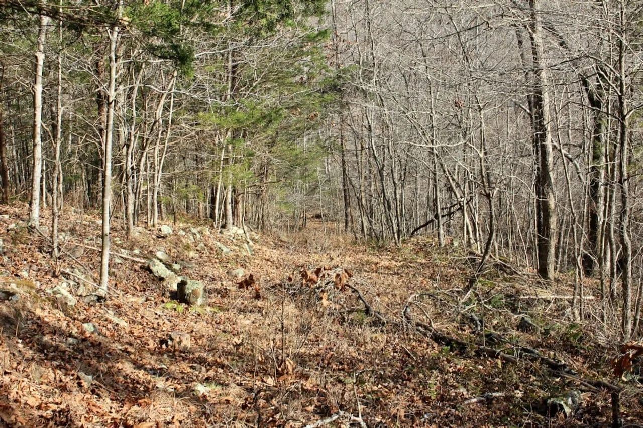 Discover your outdoor paradise with this diverse 121-acre property, perfectly situated on the Madison/Carroll County line. This land is a haven for wildlife, and a known area for deer, turkey, and bear, as evidenced by a mature buck harvested right here in 2025. A small spring trickles from a holler on the east side, providing a constant water source for wildlife. On the west side, a huge bluff line features a stunning wet-weather waterfall, creating a picturesque backdrop. Wet-weather sites branch meanders through the middle of the property. During listing photos, a pair of quail were flushed, showcasing the diverse ecosystem. Approximately 2 acres are cleared and adorned with native grasses, with an additional 1/2 acre food plot clearing and many small openings in the timber. The property also features a pine thicket comprised of some uncut mature pine, young volunteer pine, and around 10 acres of 8-10 year cutover, teeming with buck sign. This property is a tapestry of east and west-facing ridges and a bottom that runs north to south, providing varied terrain and habitat. Electric is potentially available via an easement from a neighboring property. Access is secured via a deeded easement, and an existing trail system makes navigating the land a breeze. Don't miss your chance to own this exceptional piece of Arkansas wilderness!