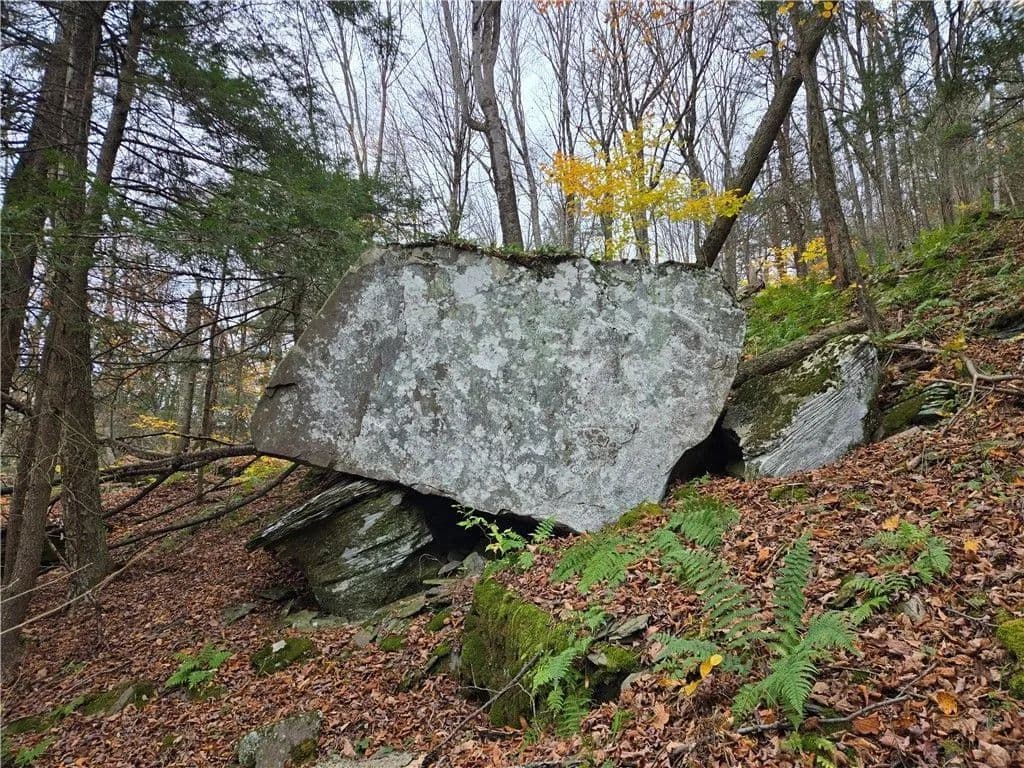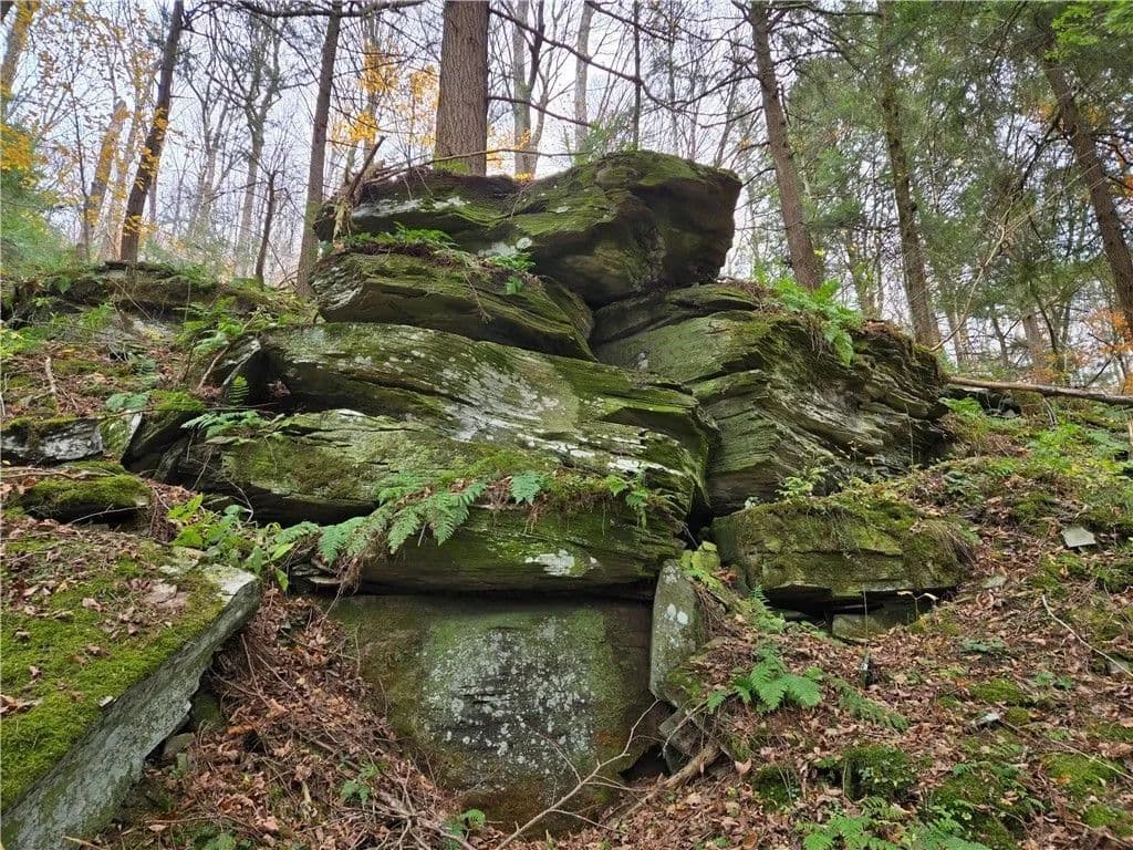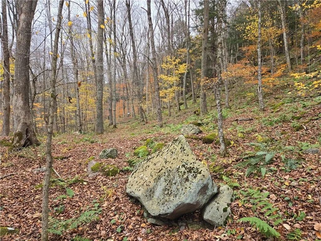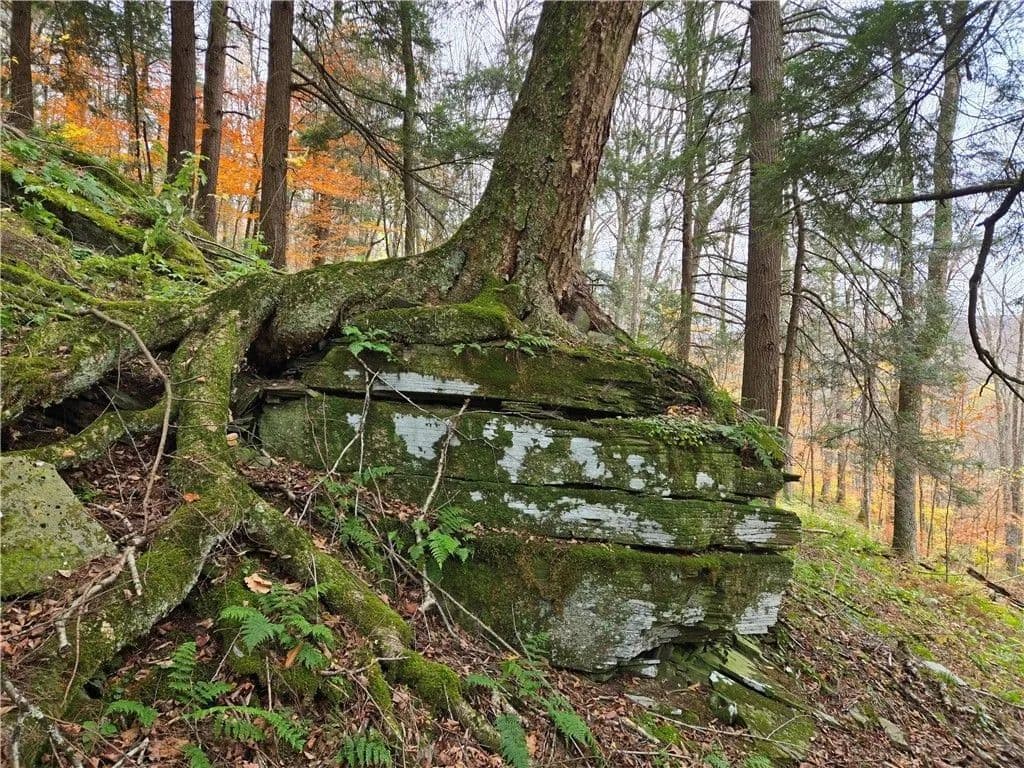 Enjoy the peace and privacy of this 5-acre mostly wooded parcel on a county-maintained road in Delaware County, NY. The lot offers a small clearing at the road for easy access, gently sloping land, and a level area suitable for a campsite or recreational use. A modest brook crosses the property, adding a natural touch without being a central feature. Further uphill, the land features unique rock outcroppings and varied terrain, perfect for exploration and outdoor activities. This property provides an ideal setting for hiking, camping, and enjoying nature. Electricity is available at the road via NYSEG. Conveniently located just minutes from Margaretville, about 19 minutes to Belleayre Mountain Ski Center, and 3 minutes to the East Branch of the Delaware River, which feeds into the Pepacton Reservoir. The property is also within walking distance of hundreds of acres of NYC Watershed land, offering ample opportunities for hiking, hunting, and outdoor recreation. A versatile, private parcel ready for your Catskills getaway.