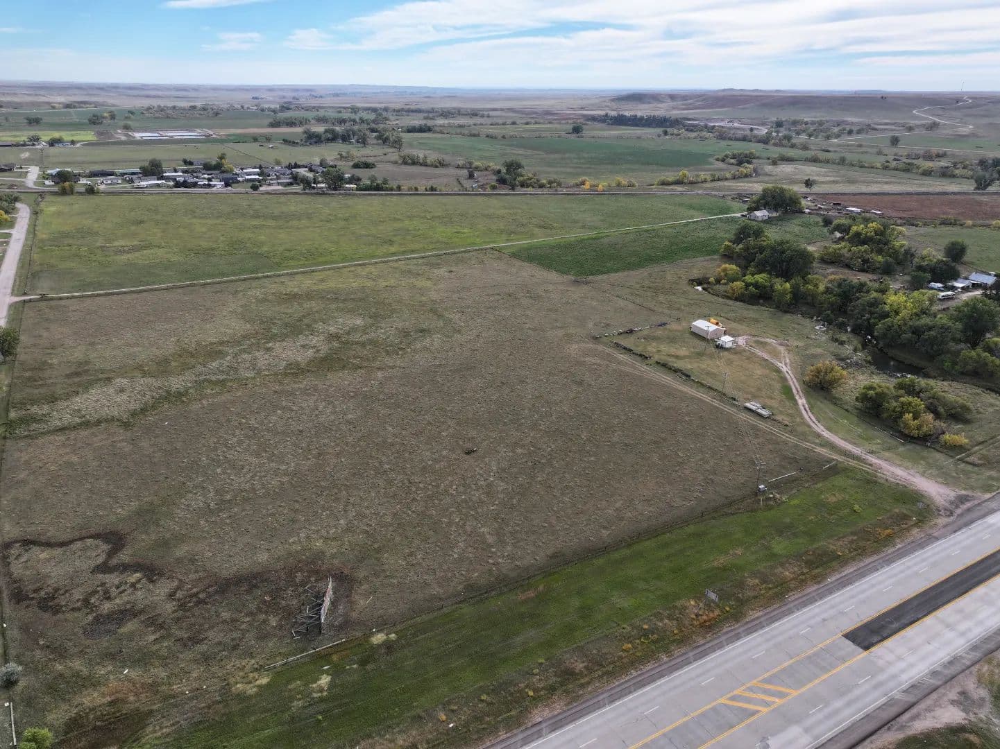 First time offered for sale since the 1800's! 64 Acres of transitional development ground located at the intersection of Hwy 79 and Hwy 40 near Hermosa. Live water flows through the property year round, excellent highway frontage or private retreat. High visibility location for new commercial or recreational business opportunity. Gentle slope ideal for natural run-off drainage into Battle Creek. Contiguous with Hermosa City limits and could possibly be annexed or leave in the Custer County. City of Hermosa has a sewer plant. Current AG access points off Hwy 79 and Hwy 40. Utilities are in the area. Approximately 14,000 VPD on Hwy 79. Live water flows through the property (Battle Creek) which contains fish. Prime hunting or grazing opportunity. Currently in ag production being farmed for hay. Only 15 minutes to Rapid City on Hwy 79 or 13 minutes to Hart Ranch. Do not drive onto property without listing agent. Deer unit 21B, Elk unit H4A, Turkey unit BH1.