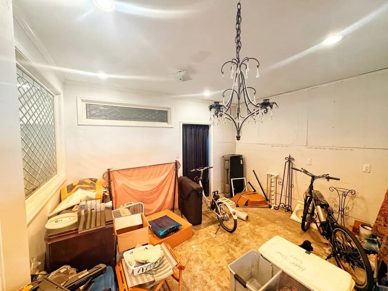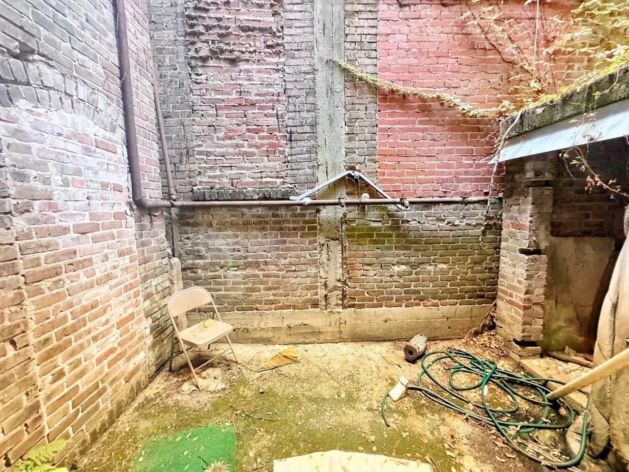 Partially renovated with exposed brick and leaded glass