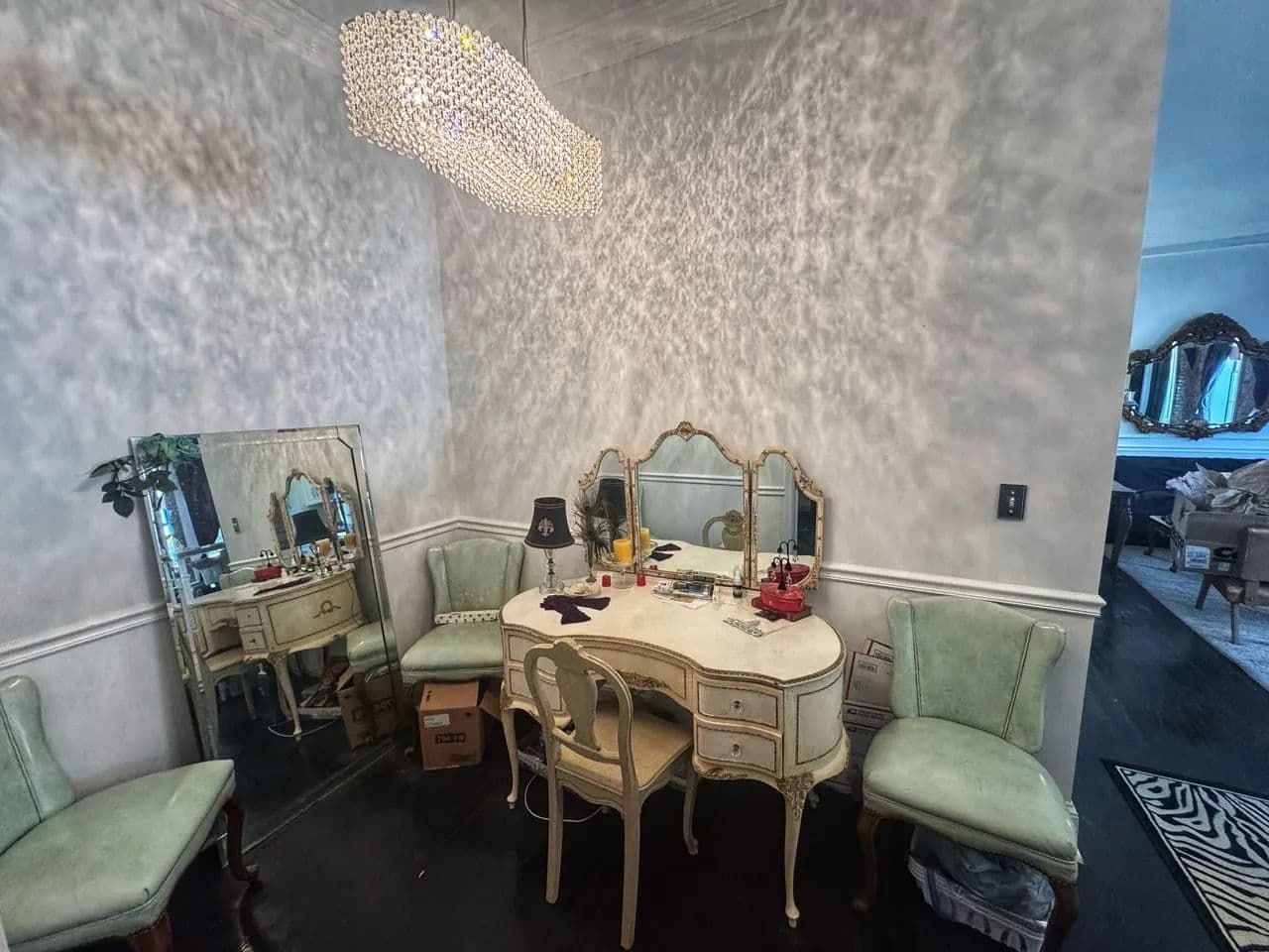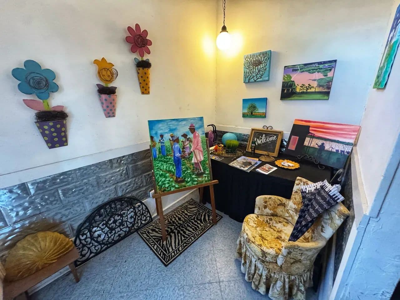 Downstairs, the property includes two commercial spaces. Facing Delta Avenue, “The Gallery” is partially renovated and full of potential, featuring leaded glass windows, exposed brick, original transom doorways, and a private courtyard with a charming wrought iron gate. Around the corner on 3rd Street, the second space is home to the world-famous Deak’s Harmonica Shop—a staple in Clarksdale that draws musicians and tourists from all over.
