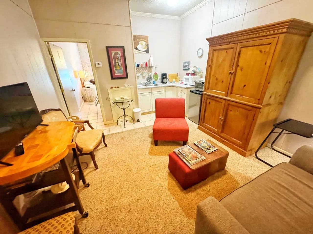 Apt 3: Living room, Kitchenette setup, bedroom overlooking 3rd Street, full bath, central heat/air + window unit