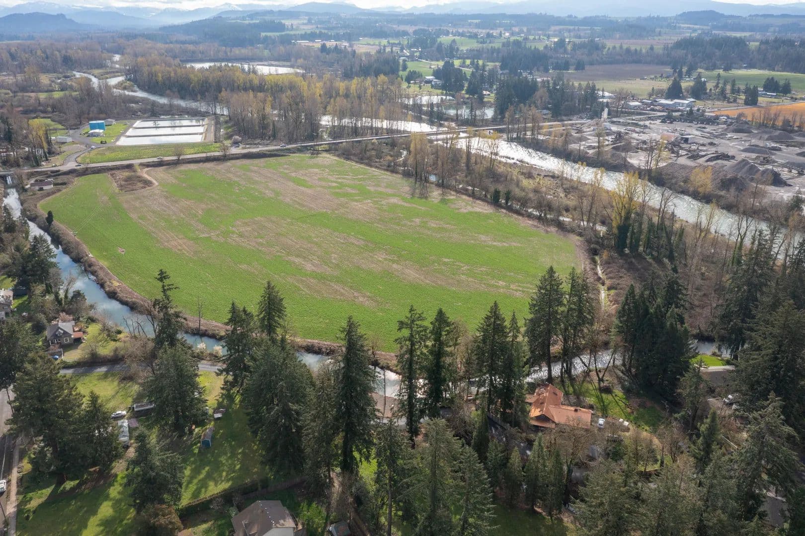 Rare riverfront development opportunity! This 30-acre development property bordered by the Mill Race on the north and the North Santiam River on the south offering approx. 20 developable acres, with 5 acres above the floodplain. Potential for borrow and fill calculations to include the ''borrow'' calculations from the aggregate quarry across the river. Explore a zone change for higher density or optimize margins with low-density development. Endless possibilities in a prime location for riverfront homes!