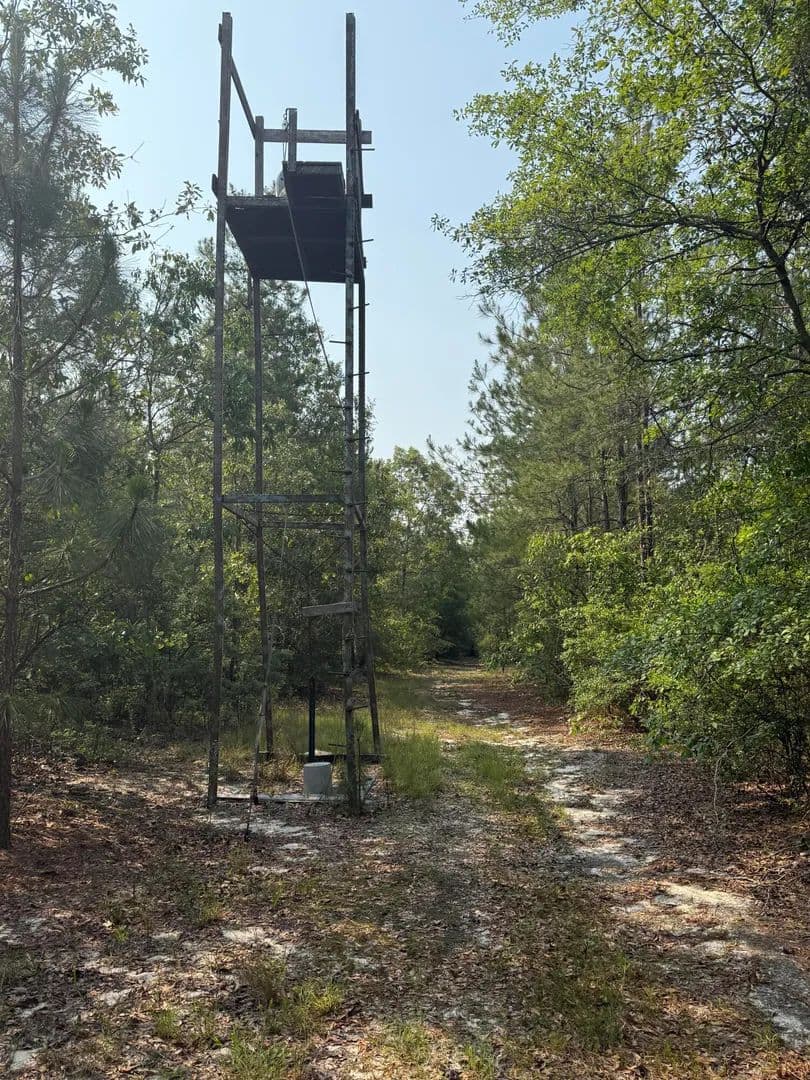 • Multiple Deer stands: one overlooking open field, others along strategic hunting lanes including one with 200-yard lane visibility