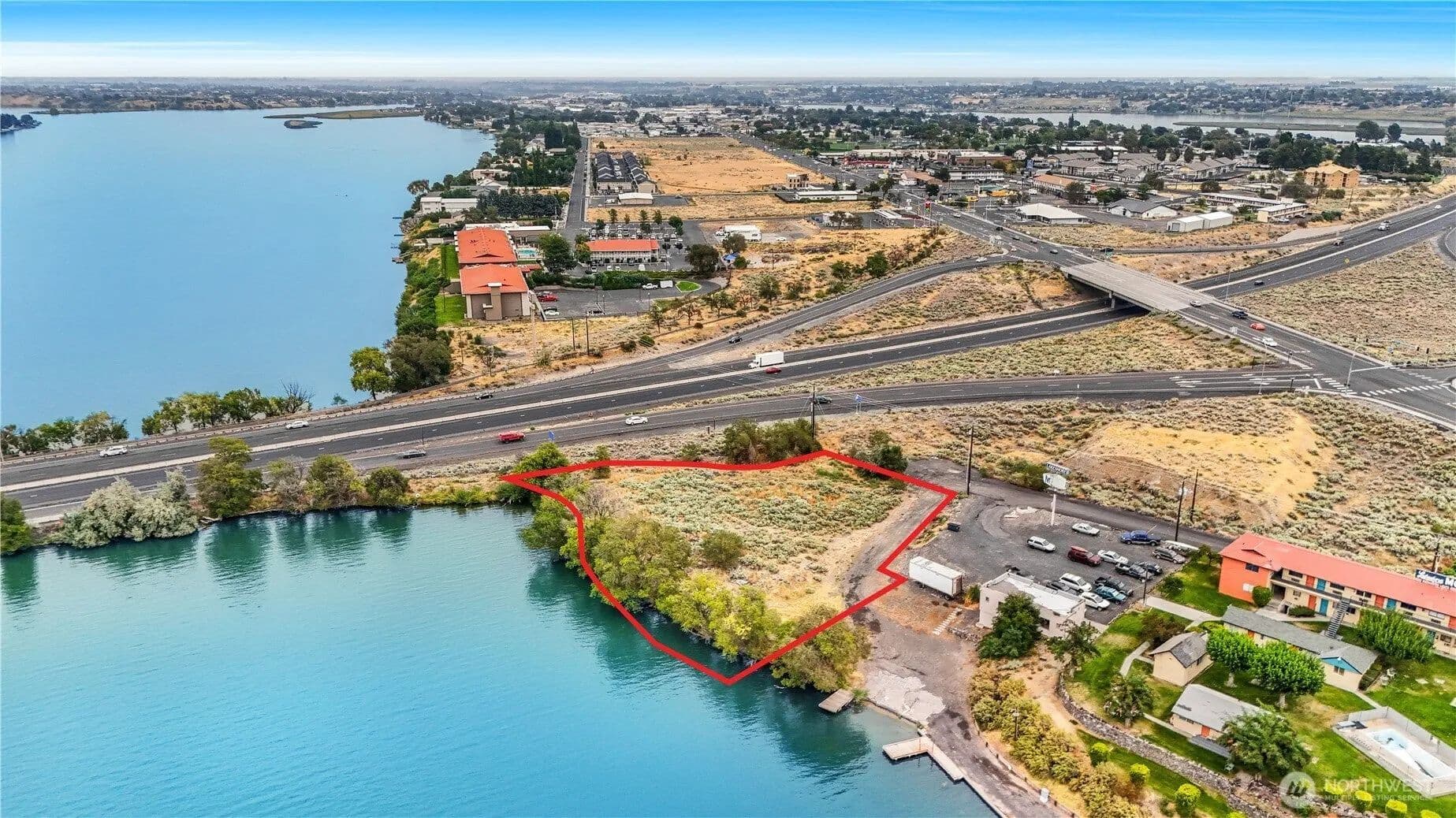 Prime commercial opportunity on Moses Lake! This vacant, waterfront lot offers unmatched visibility from I-90, drawing the attention of thousands of daily commuters and travelers. With commercial zoning, this property provides endless potential for a wide range of business ventures—whether retail, restaurant, or professional services. The combination of high-traffic exposure, lakefront setting, and convenient freeway access makes this one of the most unique investment opportunities in the region. Electricity is on the property & water is in the street! Create your vision and capitalize on this rare chance to own a highly visible waterfront commercial site in the heart of Moses Lake!