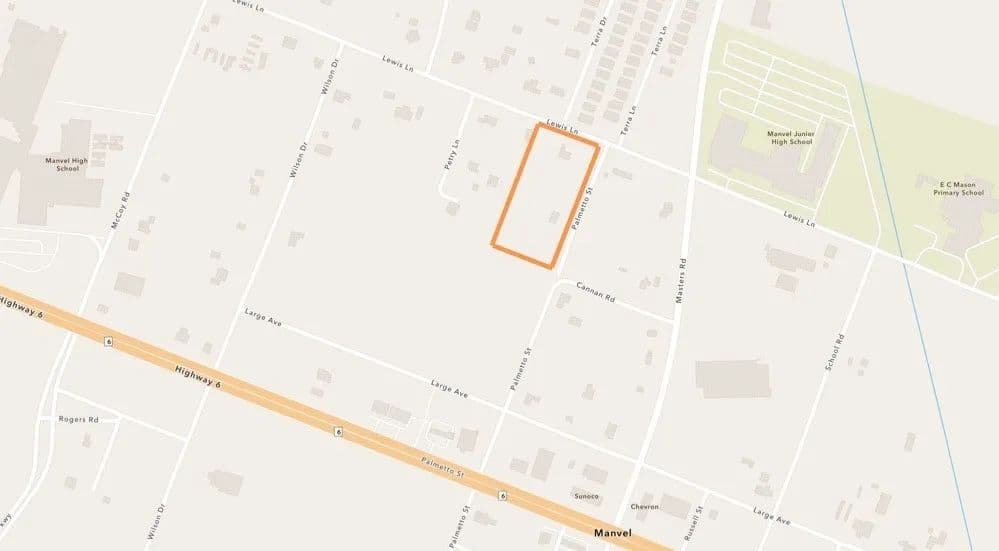 Location, Location, Location. 5 acres Tract located in the Heart of Manvel. Per City of Manvel could be rezoned to Light Commercial, Buyer responsible for having Pre Development Meeting during due diligence period. Two Homes on the property, do not disturb the tenants. 5 acres could be subdivide into 4 Lots. Preliminary Plat and Survey available, Buyer would need to go through Plating Process with City of Manvel after Closing. Buyer to verify all information. Appointment required to see land only. Buyer will not be permitted into homes without accepted offer. Estate Sale. Property being sold "As-is". Property is under 3 Tax ID number with Brazoria County. 330 Ft of Frontage on Lewis and 660 Ft of Frontage on Palmetto. Future 330 Ft Frontage on Cannan Street.