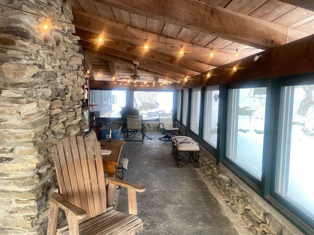 Enjoy the amazing three-season room with stamped concrete floors perfect for entertaining family and guests while taking in the views.
