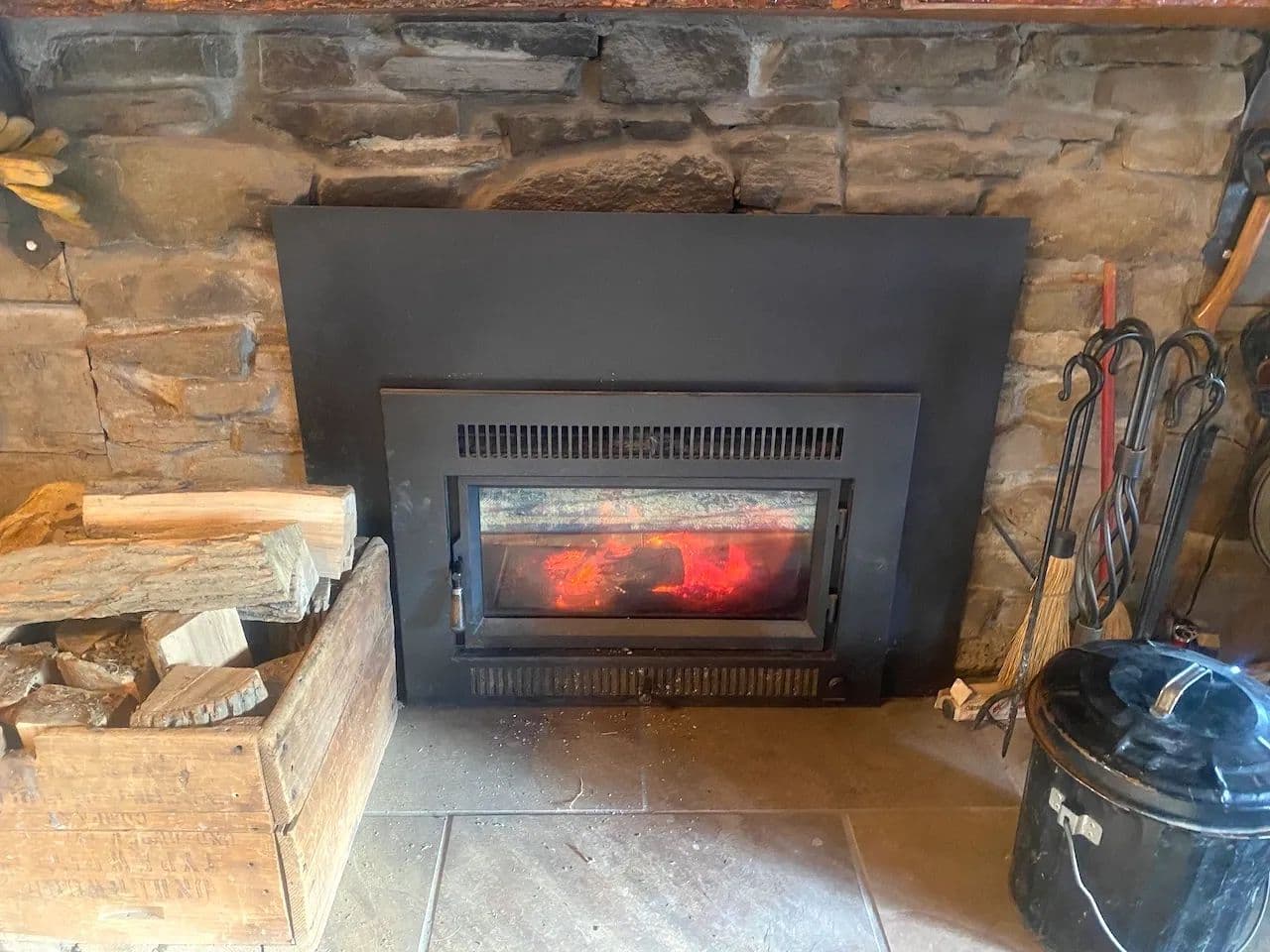 The kitchen offers a newer stainless steel refrigerator, a cooktop, and a stove-oven combination. Just off the kitchen is a bright bedroom filled with natural light and featuring its own unique creek stone fireplace.
