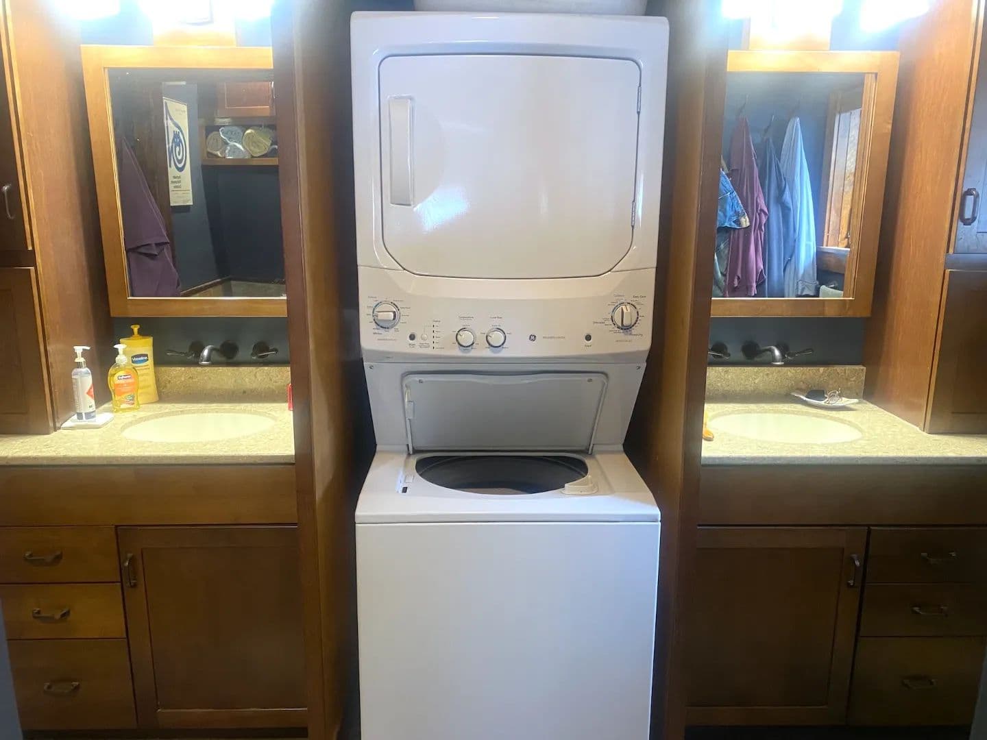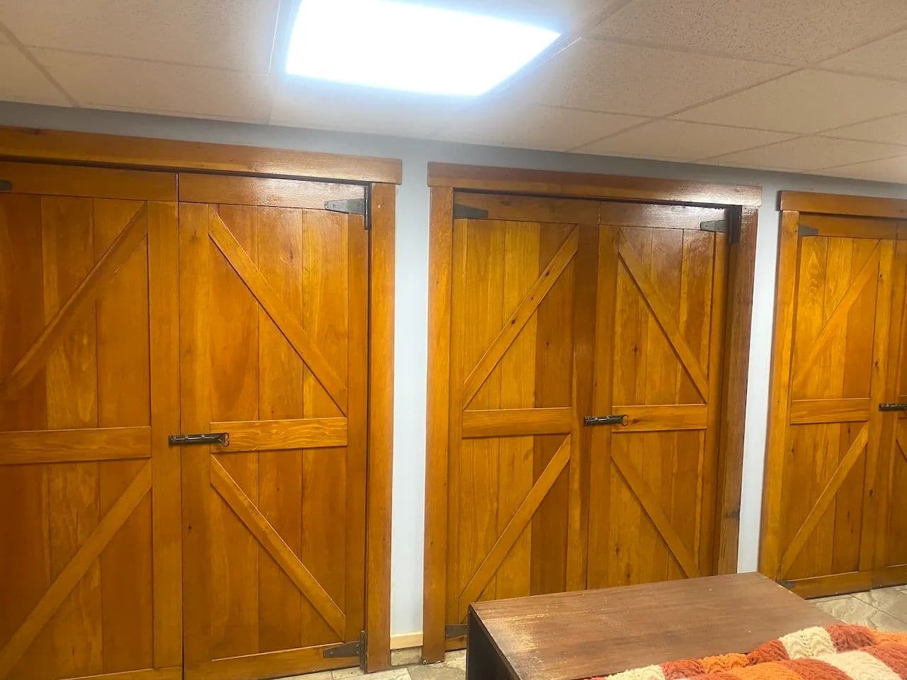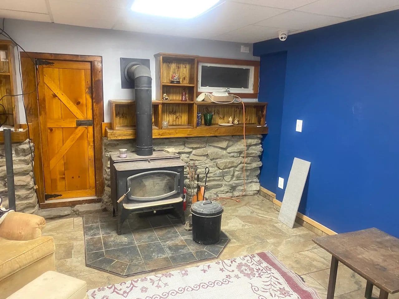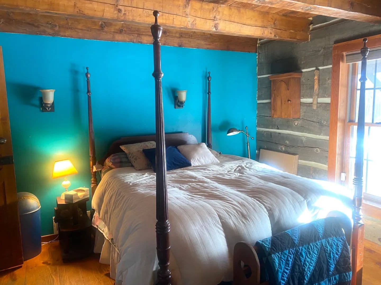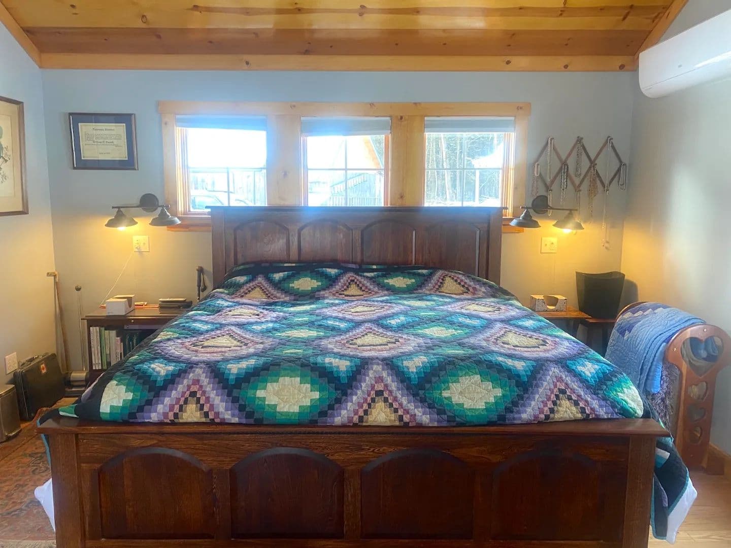 A spacious 640 sq. ft. addition includes a beautiful primary suite with vaulted knotty pine ceilings, hardwood floors, and heated floors. The full bath includes a washer and dryer, plus a heated towel rack for added comfort. A staircase with custom steel railings leads to an additional bedroom, also ideal for a home office or flex space.