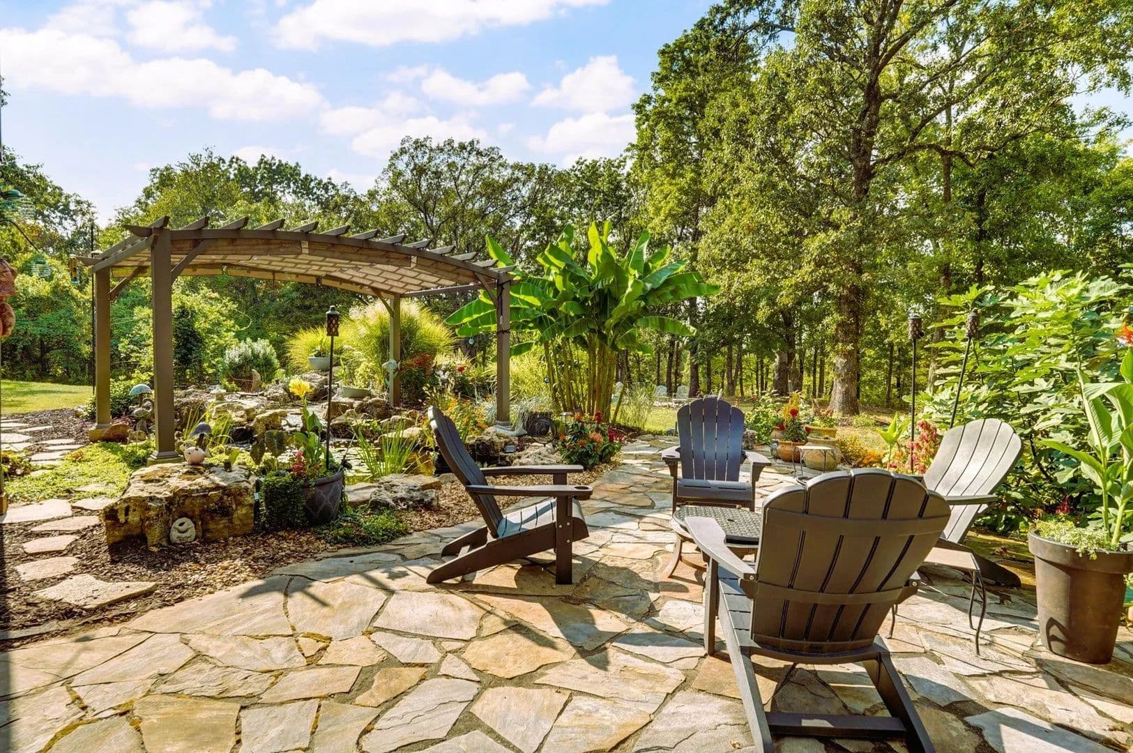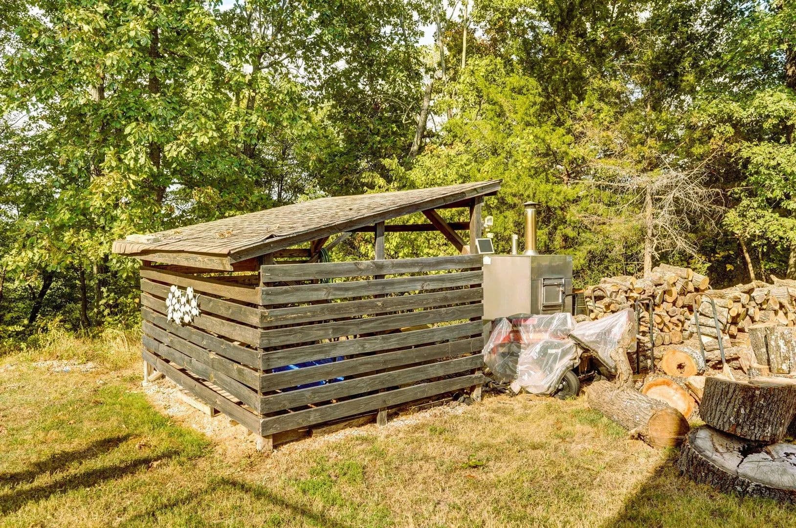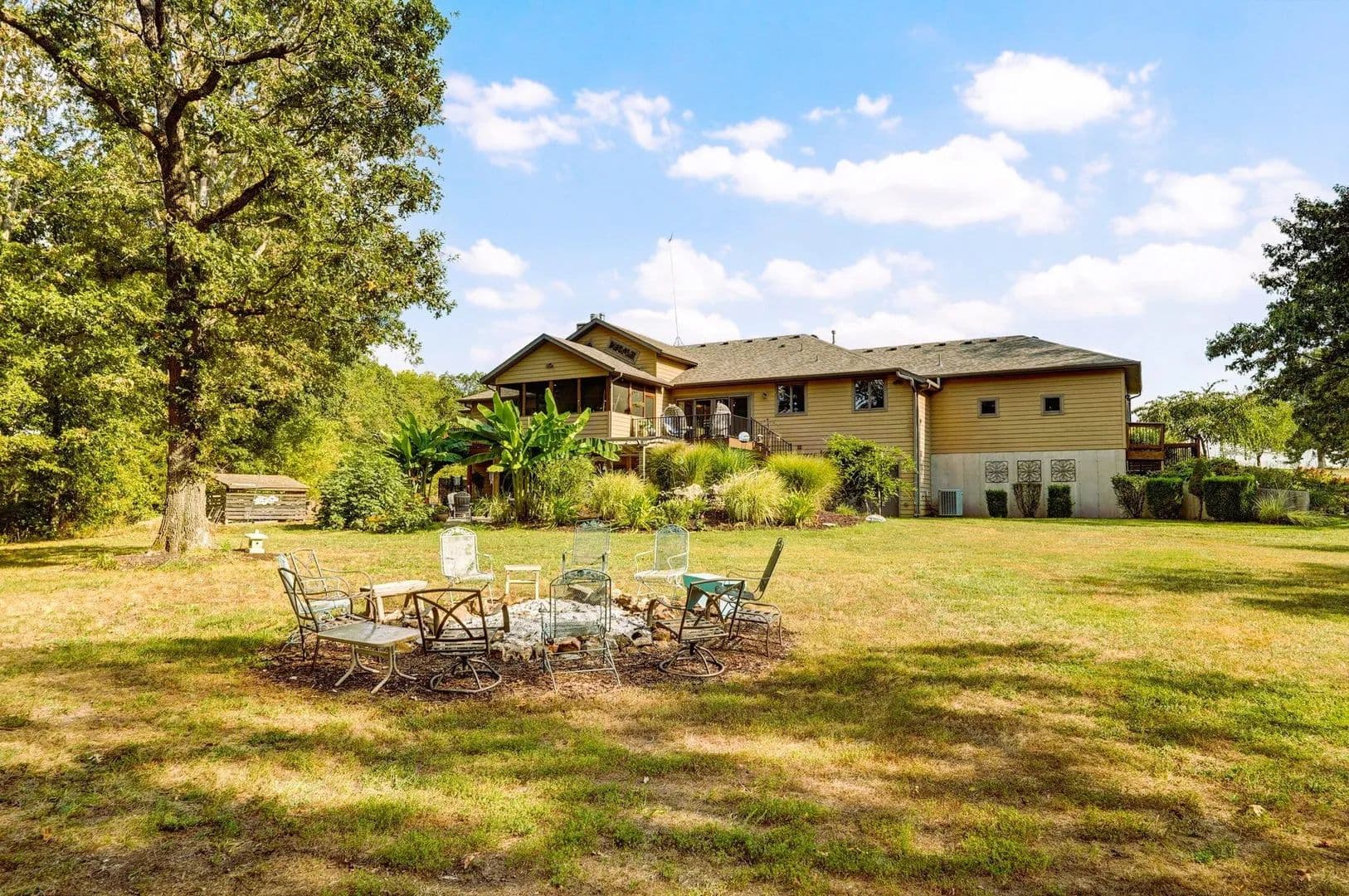 Morning coffee on a quiet deck. Sunset over the bluff. Deer moving through the trees while the koi pond ripples below. This is the kind of property people say they hope to find 'one day.' Here, it's real -- and it's move-in ready.Set on 10 secluded acres at the end of a long private drive, this one-owner, custom-built 5,500 sq. ft. estate blends comfort, craftsmanship, and privacy just minutes from Springfield and Fellows Lake. Designed with energy efficiency in mind, it features full foam insulation, 5 bedrooms (each with walk-in closets), 3 bathrooms, and a front office that can also serve as a 6th bedroom.The main level centers around a vaulted living room with a stone fireplace and insert, opening to a gourmet kitchen with new double refrigerator, granite island, custom hickory cabinetry, and a large butler's pantry. The oversized primary suite offers two walk-in closets, a soaking tub, walk-in shower, and private deck access with sweeping views.Indoor and outdoor living connect seamlessly through a screened porch, massive maintenance-free TimberTech decks, and patios overlooking an 1,800-gallon koi pond, water features, and wooded bluff. A remote collar-activated pet door and dog run with outdoor camera allow you to check on pets anytime.The walkout lower level features 9-foot ceilings, a second fireplace, wine/rec room, and generous storage. Outside, you'll find fenced raised garden beds, a producing 1/2-acre Chardonel vineyard, orchard, berry patch, greenhouse, shop, and even a heated outdoor shower. Wildlife visits daily.Recent upgrades include a new roof, Anderson windows, TimberTech decking, Hardie fiber-cement siding, and a whole-house backup generator. Heating flexibility includes propane or the optional exterior wood heating system.A rare opportunity to own a thoughtfully crafted, private estate where every detail has been designed for beauty, comfort, and long-term enjoyment.