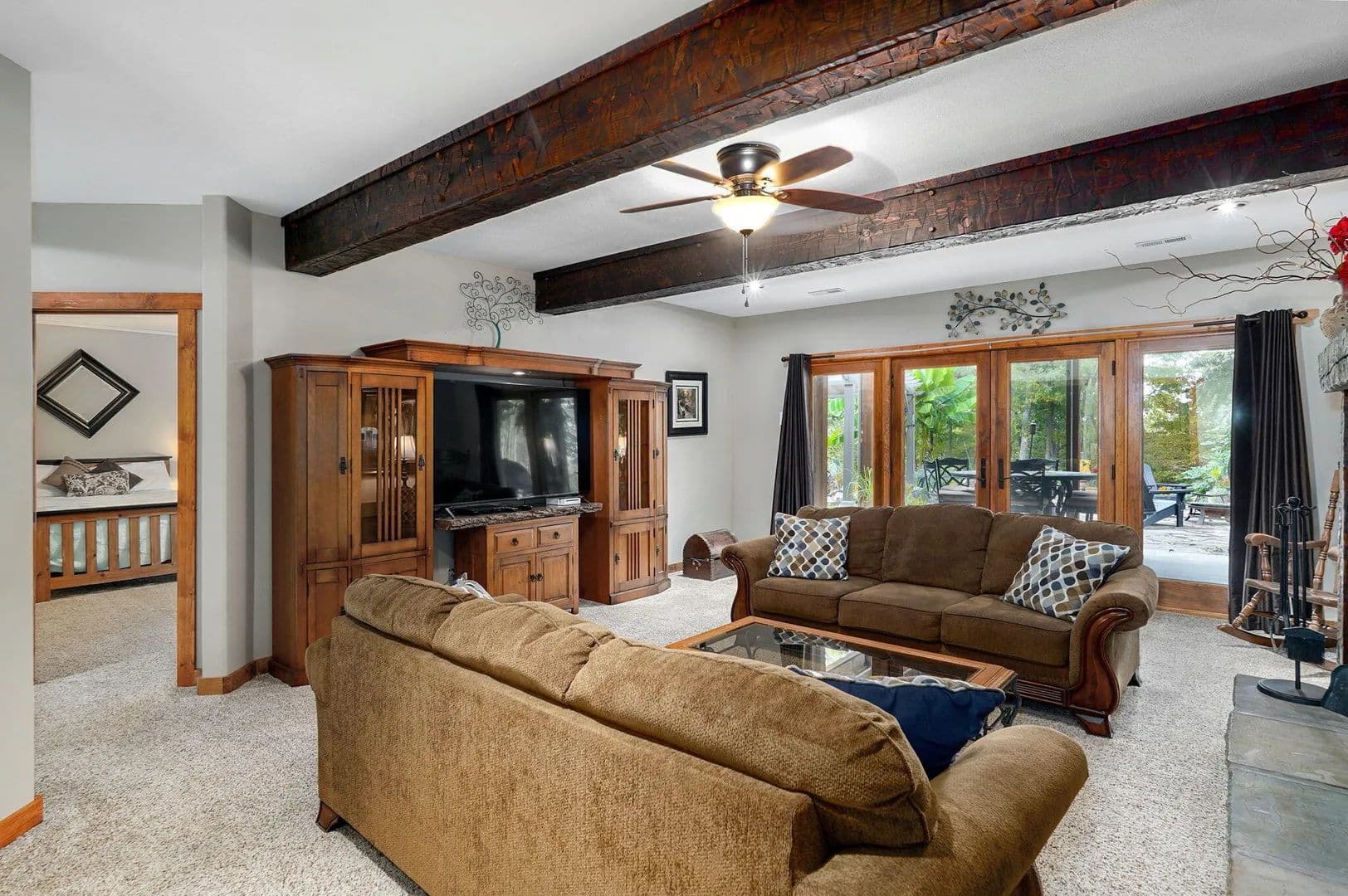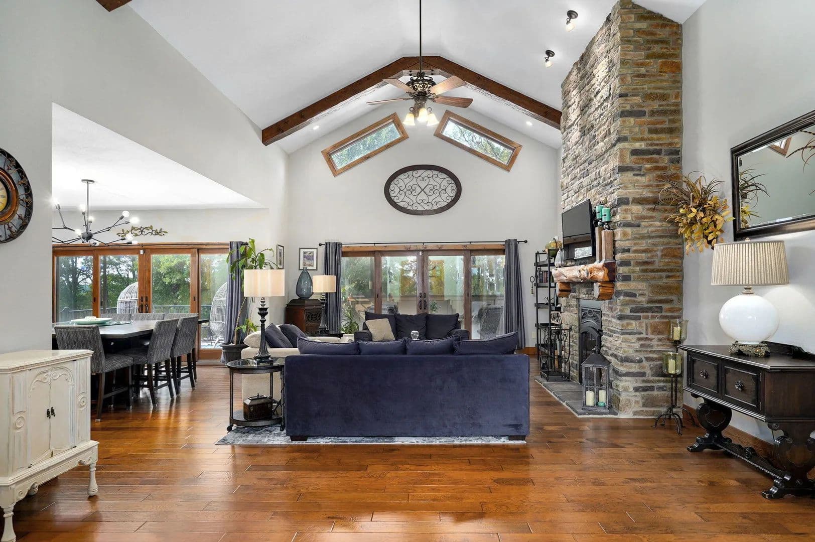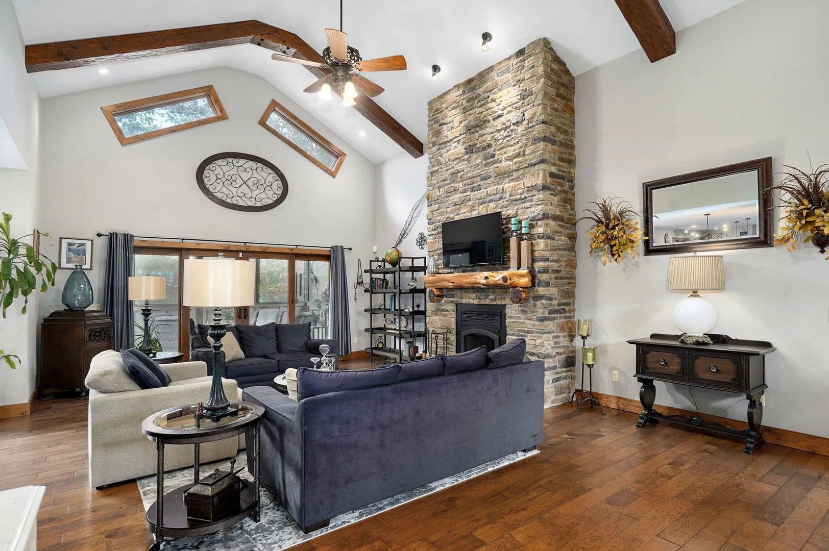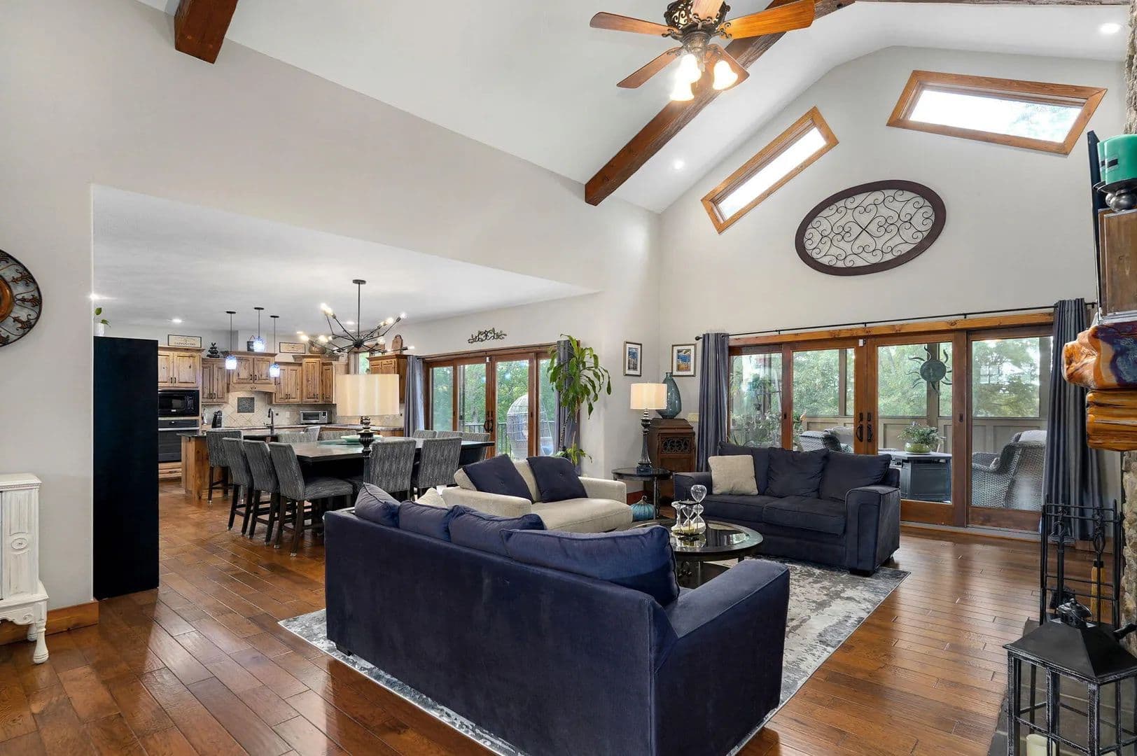 Morning coffee on a quiet deck. Sunset over the bluff. Deer moving through the trees while the koi pond ripples below. This is the kind of property people say they hope to find 'one day.' Here, it's real -- and it's move-in ready.Set on 10 secluded acres at the end of a long private drive, this one-owner, custom-built 5,500 sq. ft. estate blends comfort, craftsmanship, and privacy just minutes from Springfield and Fellows Lake. Designed with energy efficiency in mind, it features full foam insulation, 5 bedrooms (each with walk-in closets), 3 bathrooms, and a front office that can also serve as a 6th bedroom.The main level centers around a vaulted living room with a stone fireplace and insert, opening to a gourmet kitchen with new double refrigerator, granite island, custom hickory cabinetry, and a large butler's pantry. The oversized primary suite offers two walk-in closets, a soaking tub, walk-in shower, and private deck access with sweeping views.Indoor and outdoor living connect seamlessly through a screened porch, massive maintenance-free TimberTech decks, and patios overlooking an 1,800-gallon koi pond, water features, and wooded bluff. A remote collar-activated pet door and dog run with outdoor camera allow you to check on pets anytime.The walkout lower level features 9-foot ceilings, a second fireplace, wine/rec room, and generous storage. Outside, you'll find fenced raised garden beds, a producing 1/2-acre Chardonel vineyard, orchard, berry patch, greenhouse, shop, and even a heated outdoor shower. Wildlife visits daily.Recent upgrades include a new roof, Anderson windows, TimberTech decking, Hardie fiber-cement siding, and a whole-house backup generator. Heating flexibility includes propane or the optional exterior wood heating system.A rare opportunity to own a thoughtfully crafted, private estate where every detail has been designed for beauty, comfort, and long-term enjoyment.