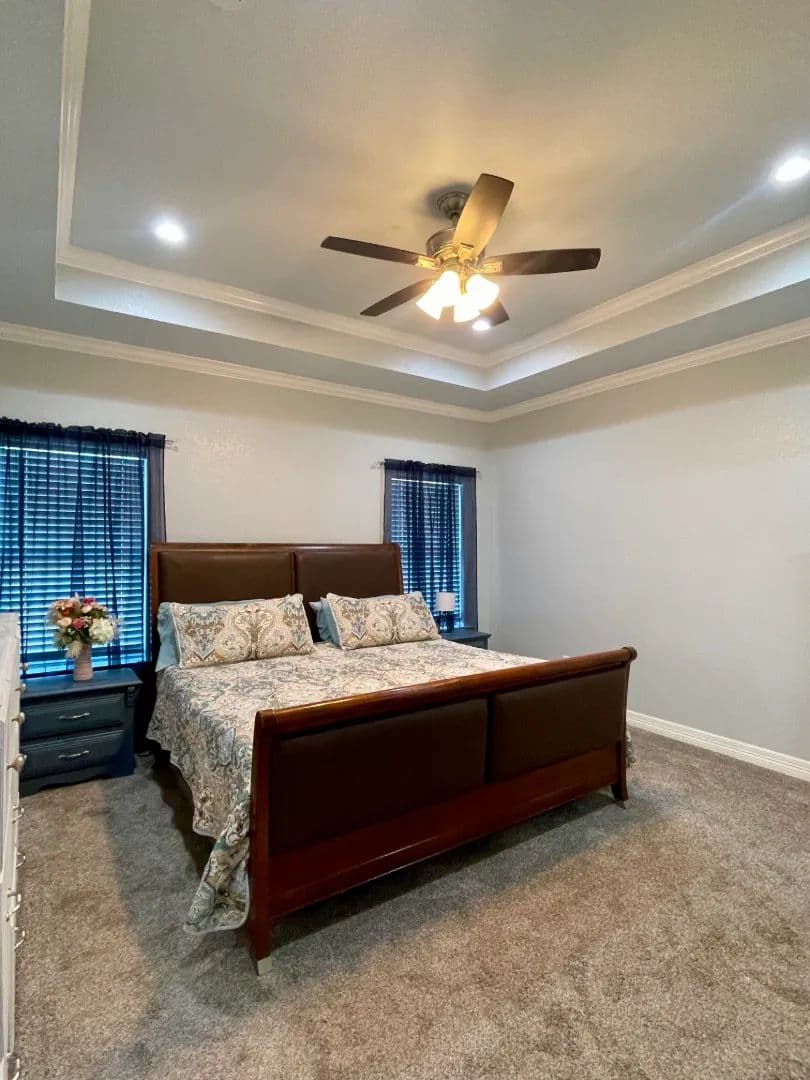 Nestled in a Subdivision, this charming country home features a split plan with open concept layout perfect for family living and entertaining. The home features vaulted beamed ceiling; pop up ceiling and double crown molding in the primary bedroom, granite countertops; and ceiling fans throughout. The primary bedroom boasts a spacious ensuite bath and walk-in closet. Three bedrooms, one currently used as an office, are split by the living area. Enjoy the covered patio and large garden area, alongside two fully insulated shops and a Tiny Home that could be a mother-in-law suite or guest suite. Don't miss out on this gem at 22477 County Road 2166, offering 4 bedrooms, 2 bathrooms, 1806 sq ft of living space, and a lot size of 114127 sq ft. Make this your new home today!