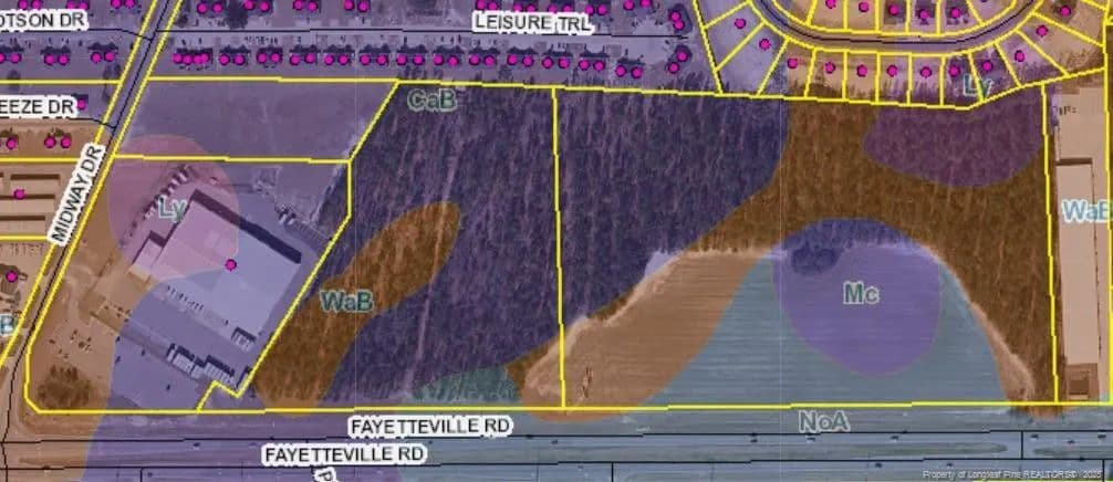 3 contiguous parcels of land available for purchase. The zoning along Fayetteville Road is HC and has +/- 2,154 feet of road frontage. All 34.6 acres of land have been timbered and are ready for construction. Do not miss the opportunity to purchase this wonderful property.