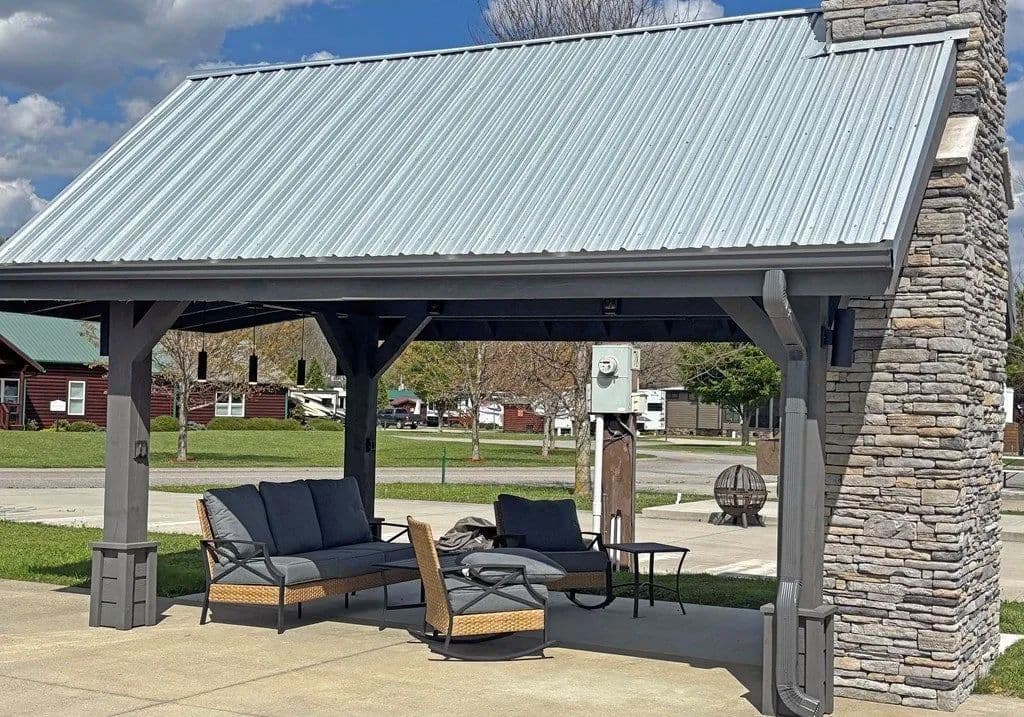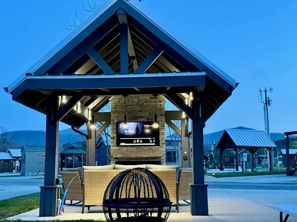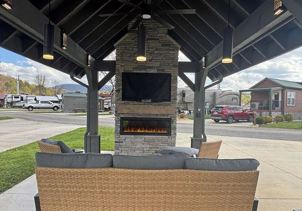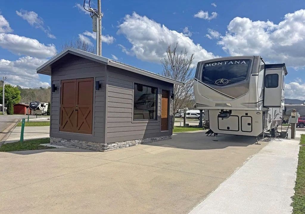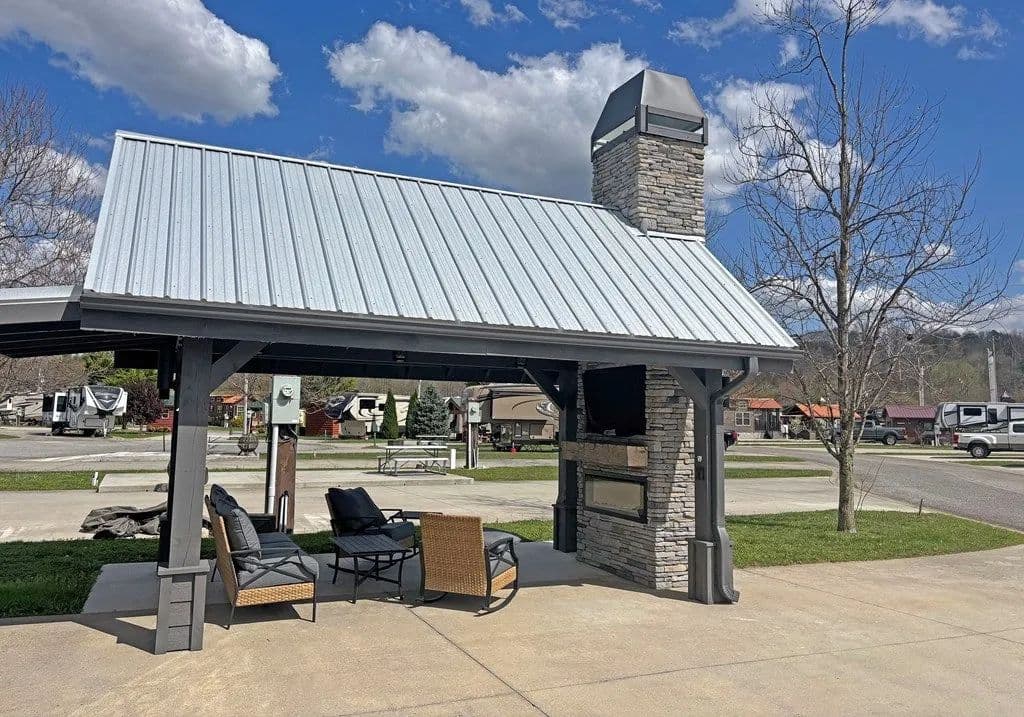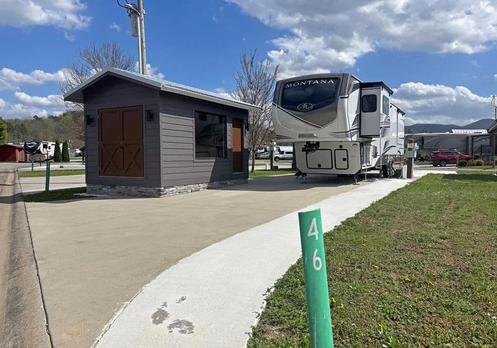 Discover the ultimate outdoor oasis with this exceptional lot that promises an unparalleled RV lifestyle! Envision your retreat with many conveniences finished for you: completed concrete work, with water and power lines already in place. This property features a versatile, insulated shed, perfect for storing your golf cart or creating a cozy retreat for the kids. There's more... At the heart of this lot is a stunning pavilion, designed with style and functionality in mind and elegant lighting that sets the perfect mood for evening gatherings. Picture yourself unwinding by the beautifully crafted stacked stone fireplace, watching your favorite shows on the TV while soaking in the breathtaking mountain views. But that's not all! The owner has thoughtfully prepared a space for a bar area, with cabinets and countertops ready for installation. For an additional $10,000, you can add custom cabinetry and countertops before closing, making this space ideal for entertaining or relaxing with friends and family. This is not just a lot; it's part of the RV lifestyle waiting to be embraced at our mountain destination in Blairsville, Georgia. Don't miss your chance to own the most astonishing lot on the block—where memories are made and tranquility reigns supreme! The property is nestled within the picturesque Georgia Mountains at Crossing Creeks RV Resort and Spa, a luxurious retreat on over 60+ acres of beautiful landscape. Immerse yourself in nature's tranquility, surrounded by the beauty of Coosa and Anderson Creeks. This lot is more than just a property; it's an invitation to embrace a serene lifestyle in one of North Georgia's finest RV communities. Enjoy amenities such as a fitness center, pools, a dog park, Pickleball courts, a community center, and much more. Your dream getaway awaits!
