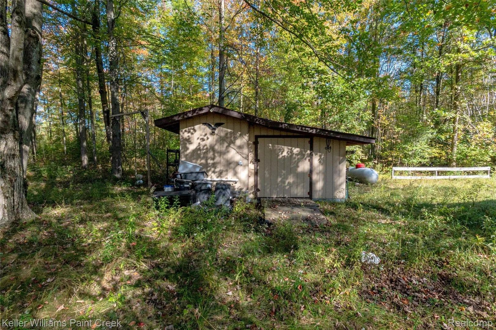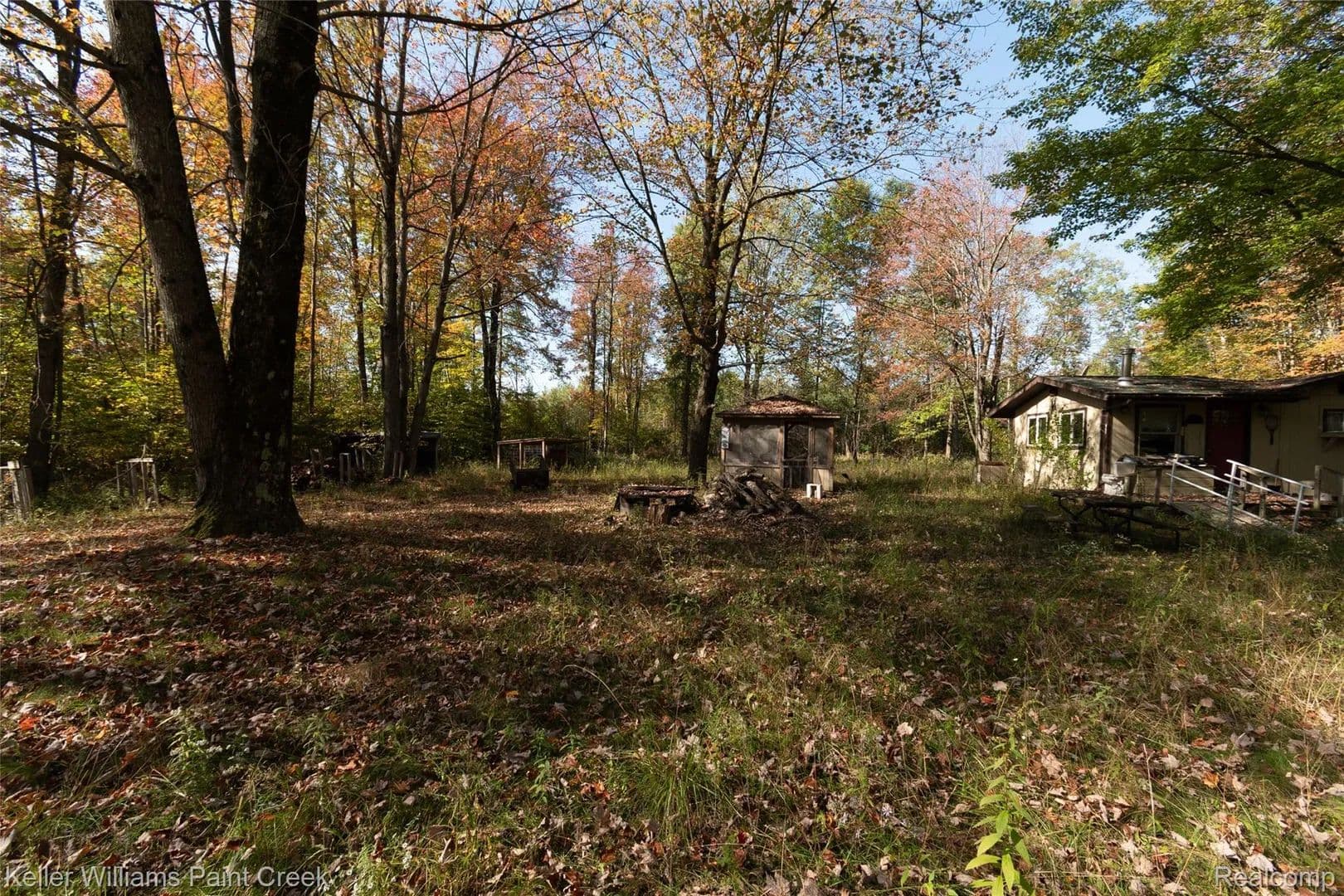 The property also features several practical structures such as an 8x12 deck, a 12x12 screened pavilion, a 12x18 shed, an additional 8x8 shed, and an 8x16 firewood shelter. Surrounded by mature woods and set along a paved road, this location provides a private rural setting with convenient access.